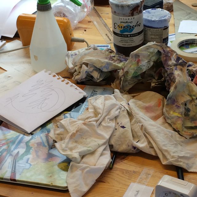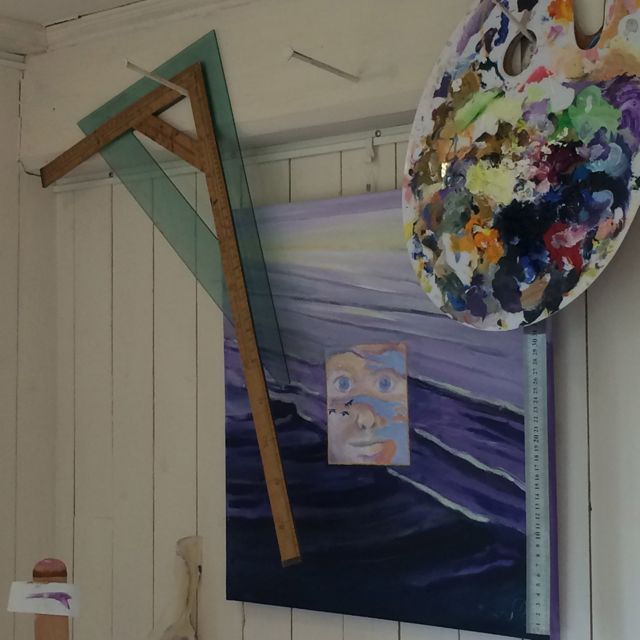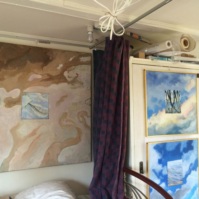 I ateljen råder kreativitetskaos. Det har varit roligare att måla FI-or än att städa.