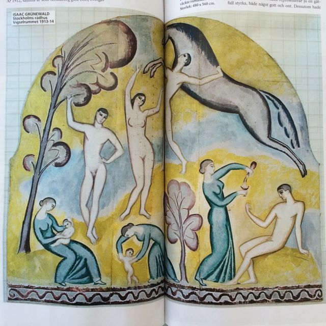 De skriver om Skissernas museum i Lund. Där finns den här bilden som var Isak Grunewalds förslag till monumentalmålning till rummet för borgerlig vigsel i Stockholms.