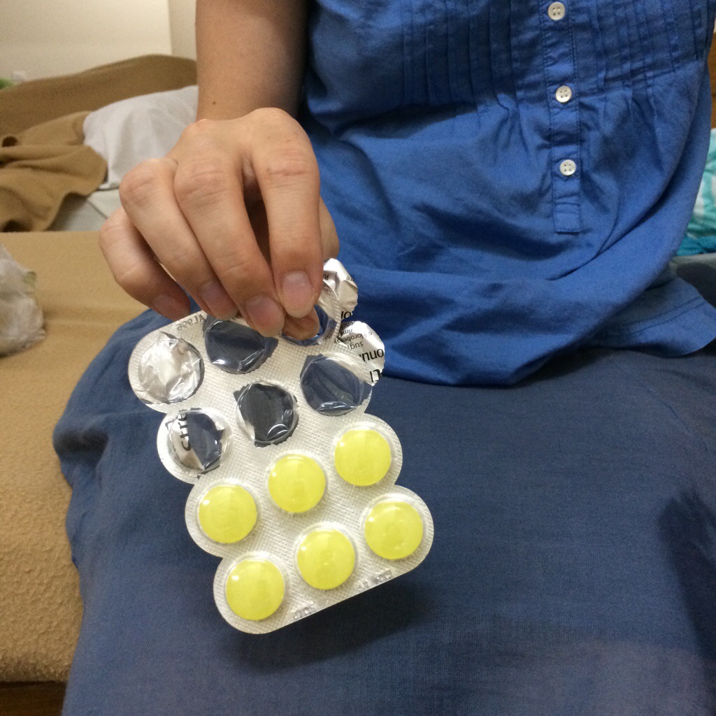 Vilken vän, sänggrannen bjuder på Strepsil när rethostan stör sömnen.