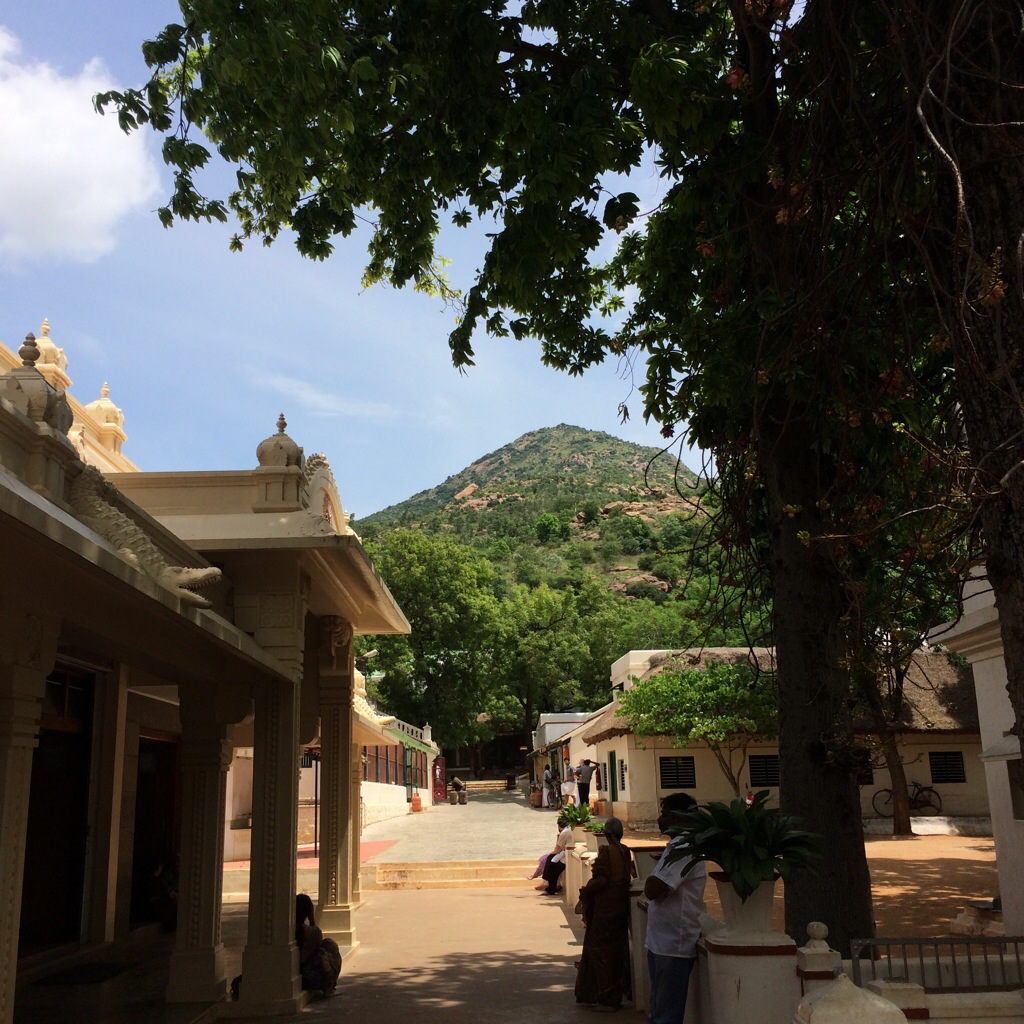 Älskar den här siluetten, Arunachala, berget som är Shivas kropp. Här stannar vi några dagar.