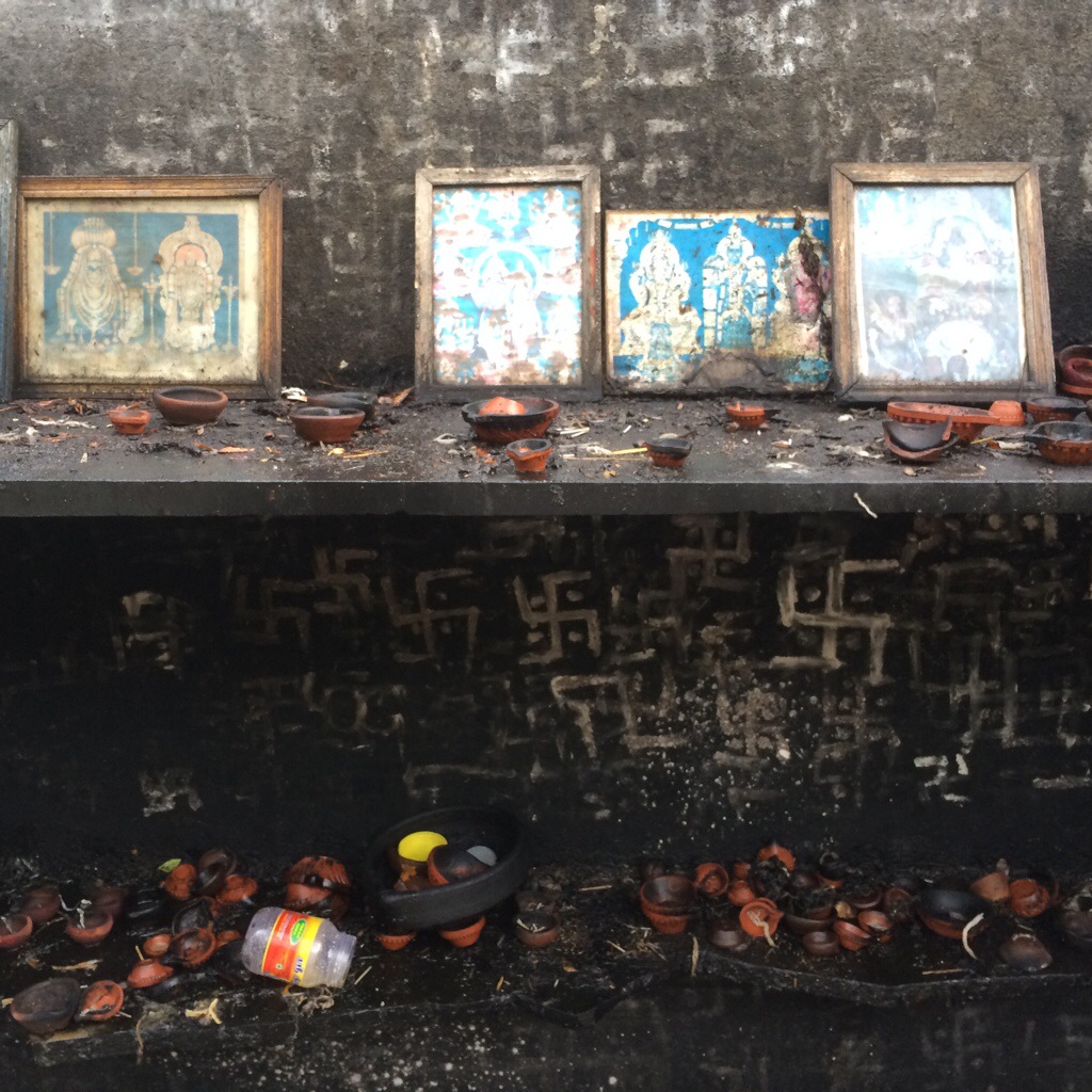 Man tänder gärna ljus av ghi, (skirat smör, ungefär) ett lager av svart o fett täcker det mesta.