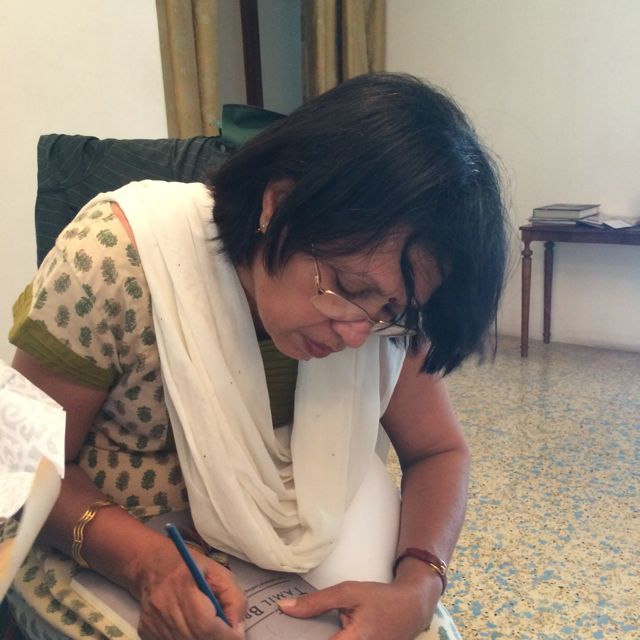 Så signerar hon böckerna som hon överräcker (TACK!) och vi börjar redan planera NÄSTA gång jag kommer till Chennai….. DÅ……