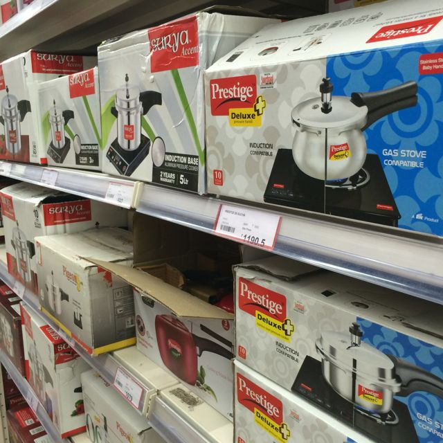 Att tryckkokare är populära i Indien är inte att ta miste på. Hylla upp och hylla ner. jag hittar en liten söt tryckkokare på 2 liter.  Det blir nog nåt blogginlägg med den framöver.