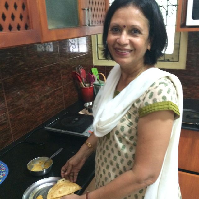 Det var med ren vilja hon tog sig in i matlagningen, i Indien är det ju så att matlagning hamnar på kvinnornas lott,det var väl inget som så där ifrågasattes. Med tiden gick det allt bättre och till sin förvåning fick hon ofta beröm och fick höra ”du borde skriva en kokbok!”