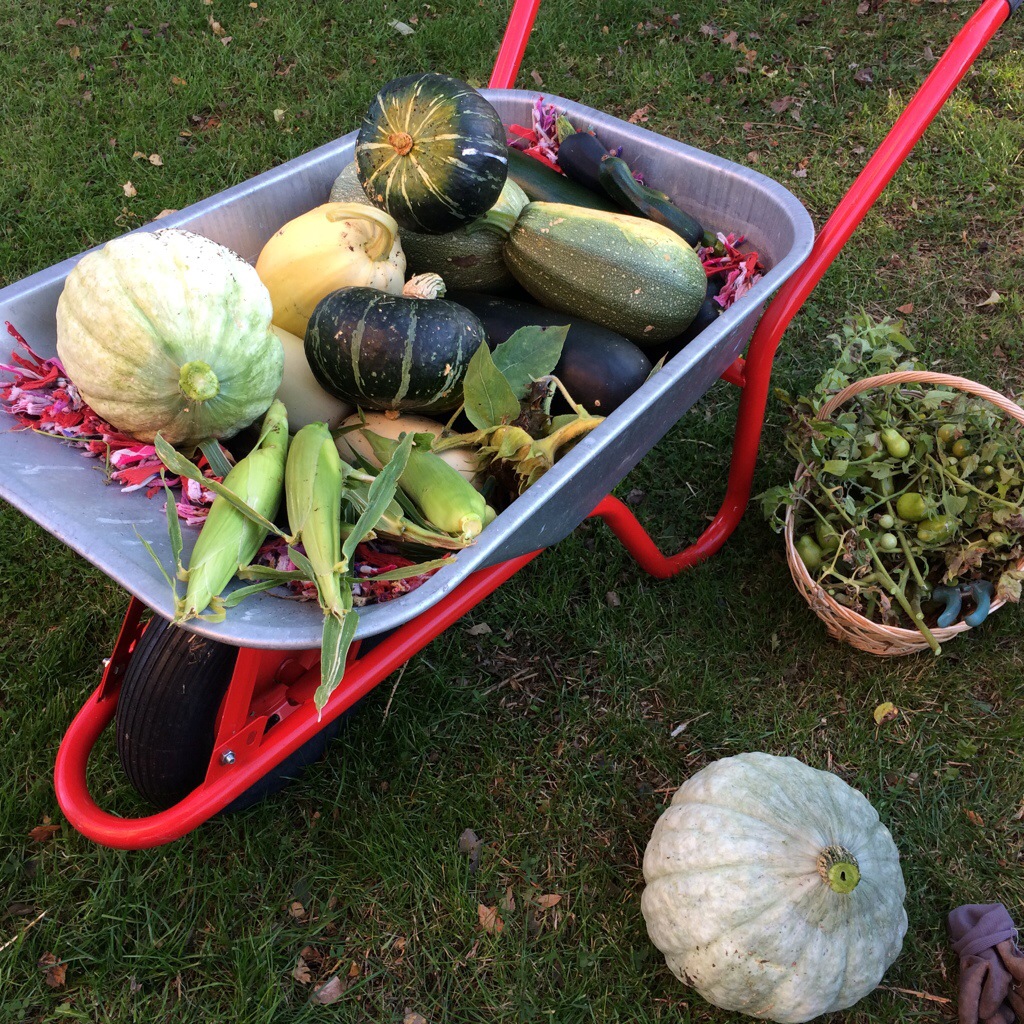 Vi blir lika förvånade varje höst. Va! Frost ! Vi som inte plockat in pumporna! Det blir utryckning med skottkärran för att rädda hem maten.