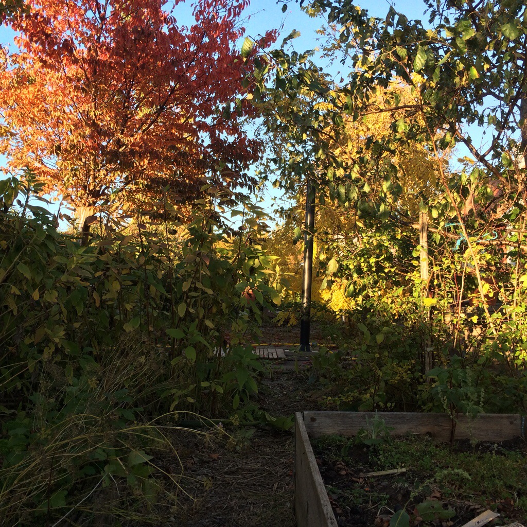 Trädgårdshöst. Så olik trädgården är i sina höstfärget. Stillhet.