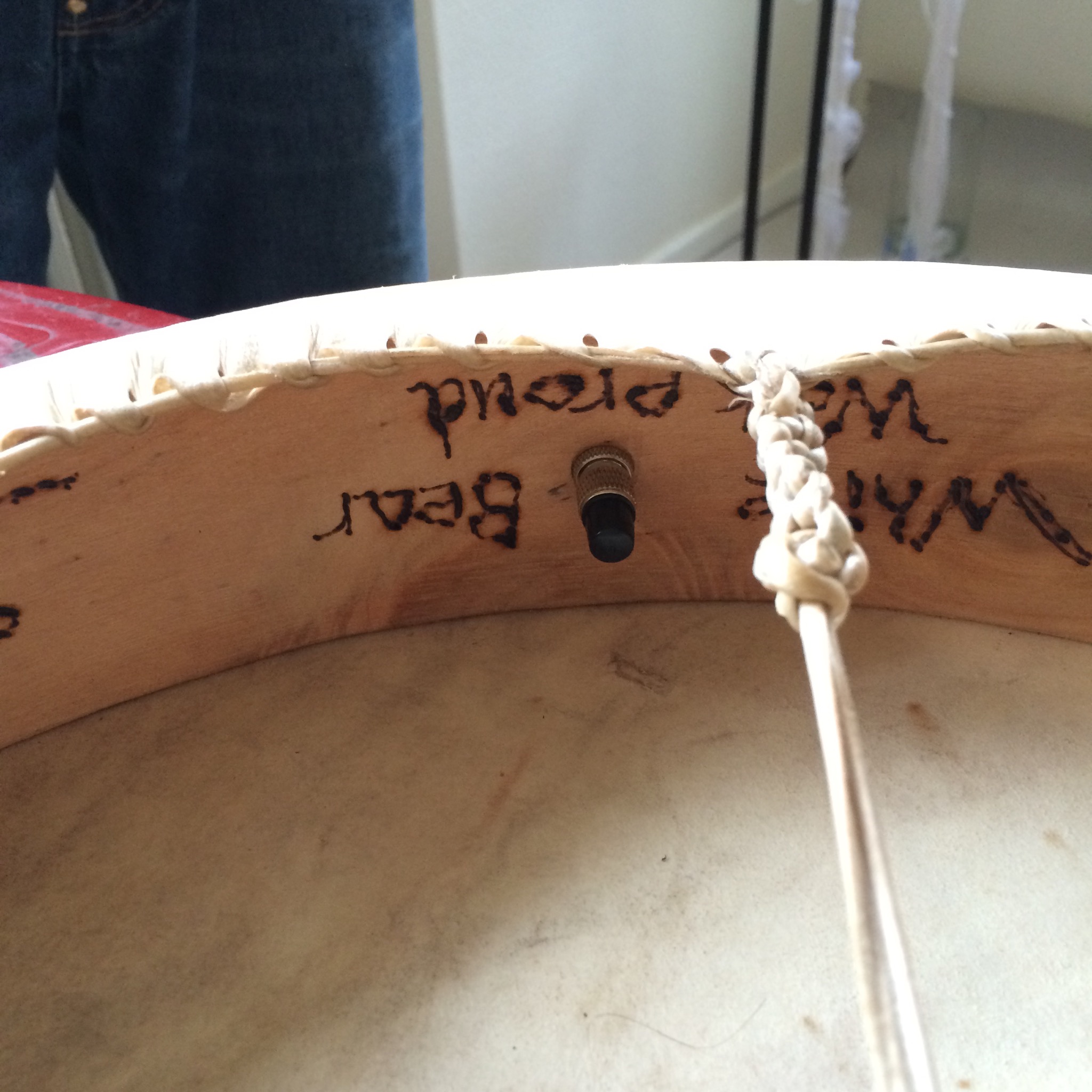Martin har byggt trummor, hela dagen igår. Skinnet är fortfarande mjukt o fuktigt