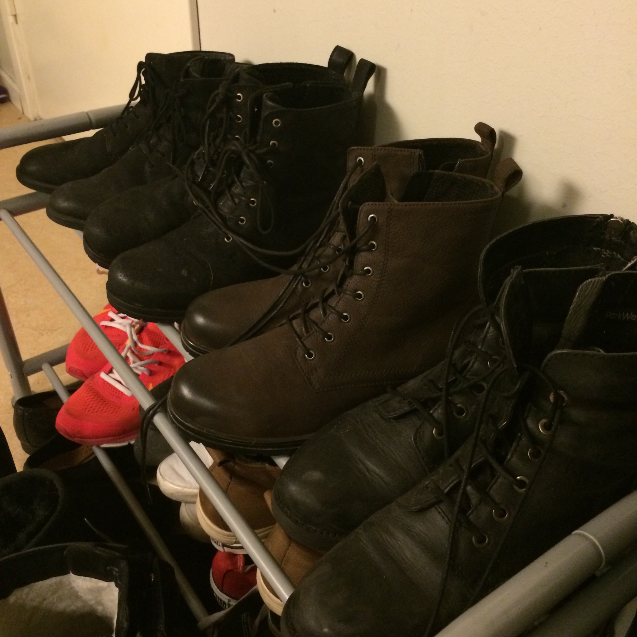 Men jag får svar, nån e blank en annan matt. Nån tål regn en annan e tjock o varm. Ja det är ju klart man måste ha 7 par kängor!