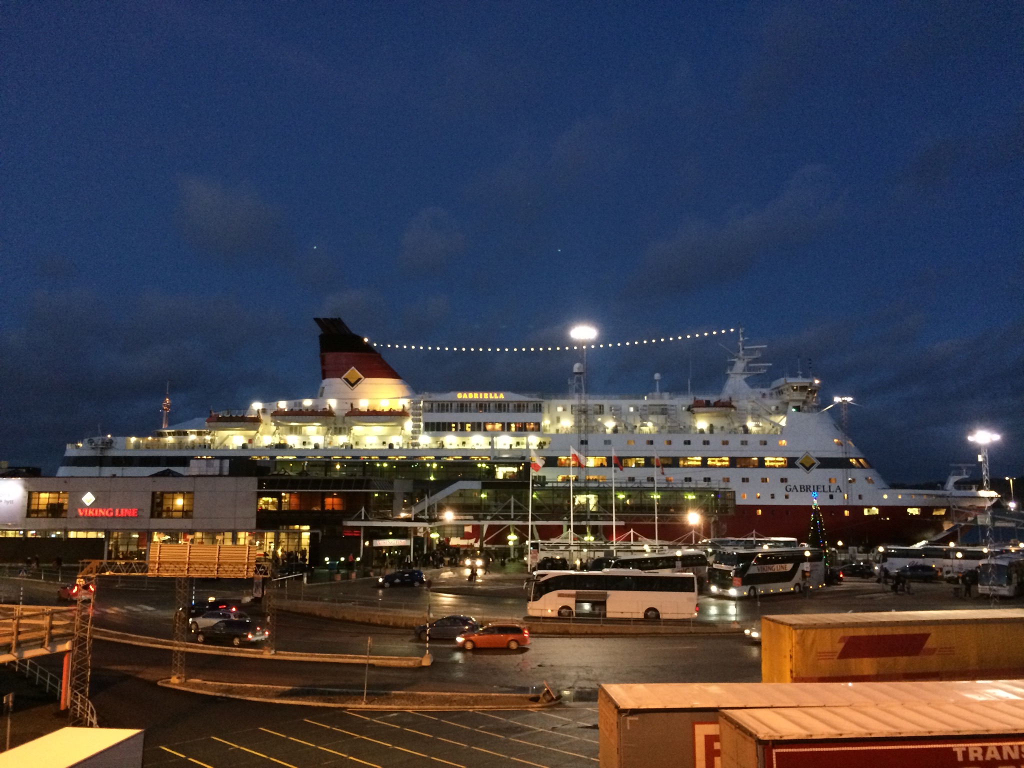 Som en enorm JULGRAN lockar Finlandsbåten. Dock ej på mig, jag är här på riktig snabbis, Fittisage!!