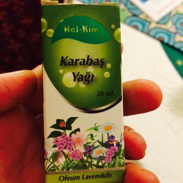 Eterisk olja, köpt i Turkiet. Trodde det var LAVENDELOLJA… Det står ju det, längst ner på paketet. Men det är från en växt som hette typ ”stinkande långhårig Hund” det är vad den luktar…