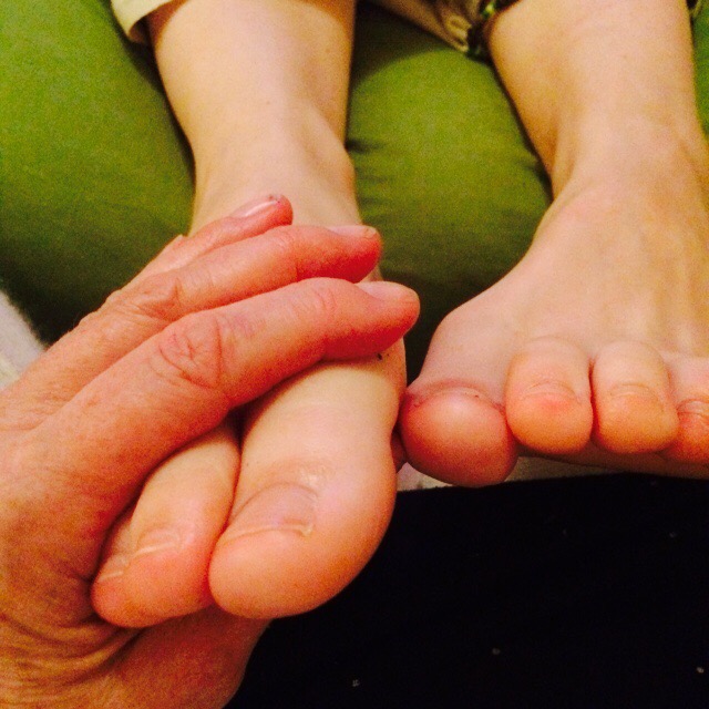 Efter ett tag blir det långsammare mellan svaren. Vem kan låta bli att somna när man får fotmassage? Det fina e att man liksom pratar, kommunicerar i alla fall, fast inget blir sagt i ord. Fötter är fantastiska.