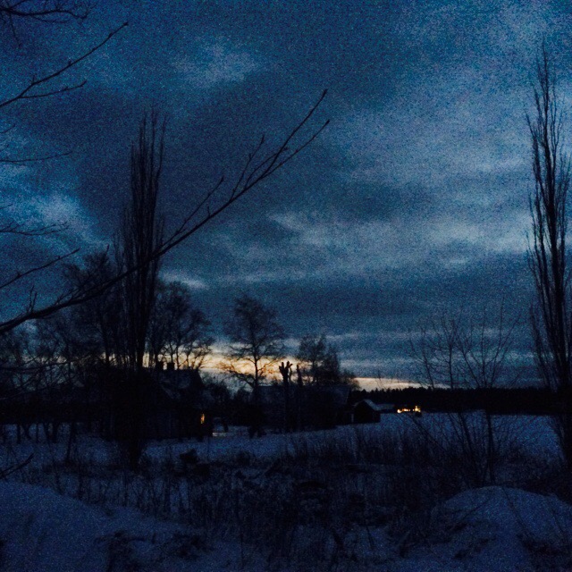 Det är snötyst. Fåglarna sover redan. Klockan är fem, men himlen skimrar svagt. ”Det doftar dagsljus” sa en vän för några dagar sedan.