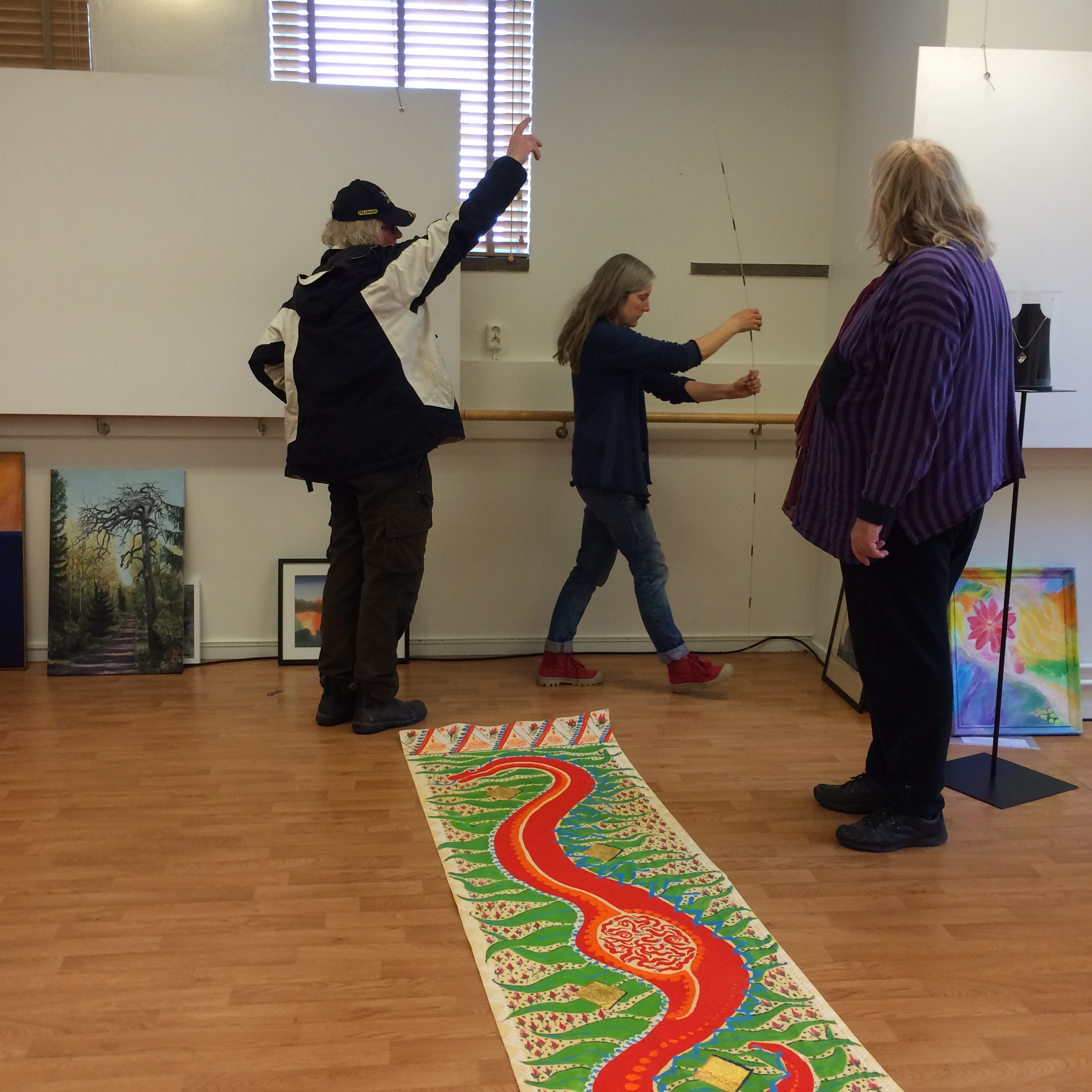 Proffsig hängningsgrupp. Ruriks röda orm är ju väldigt lång men de trixande utan knot.