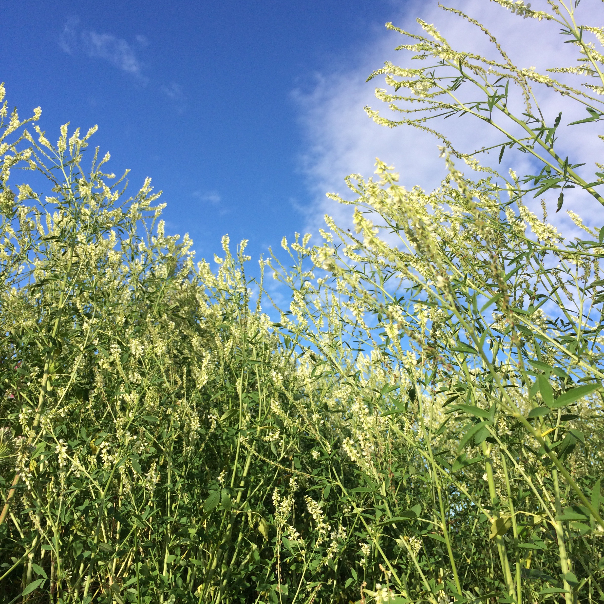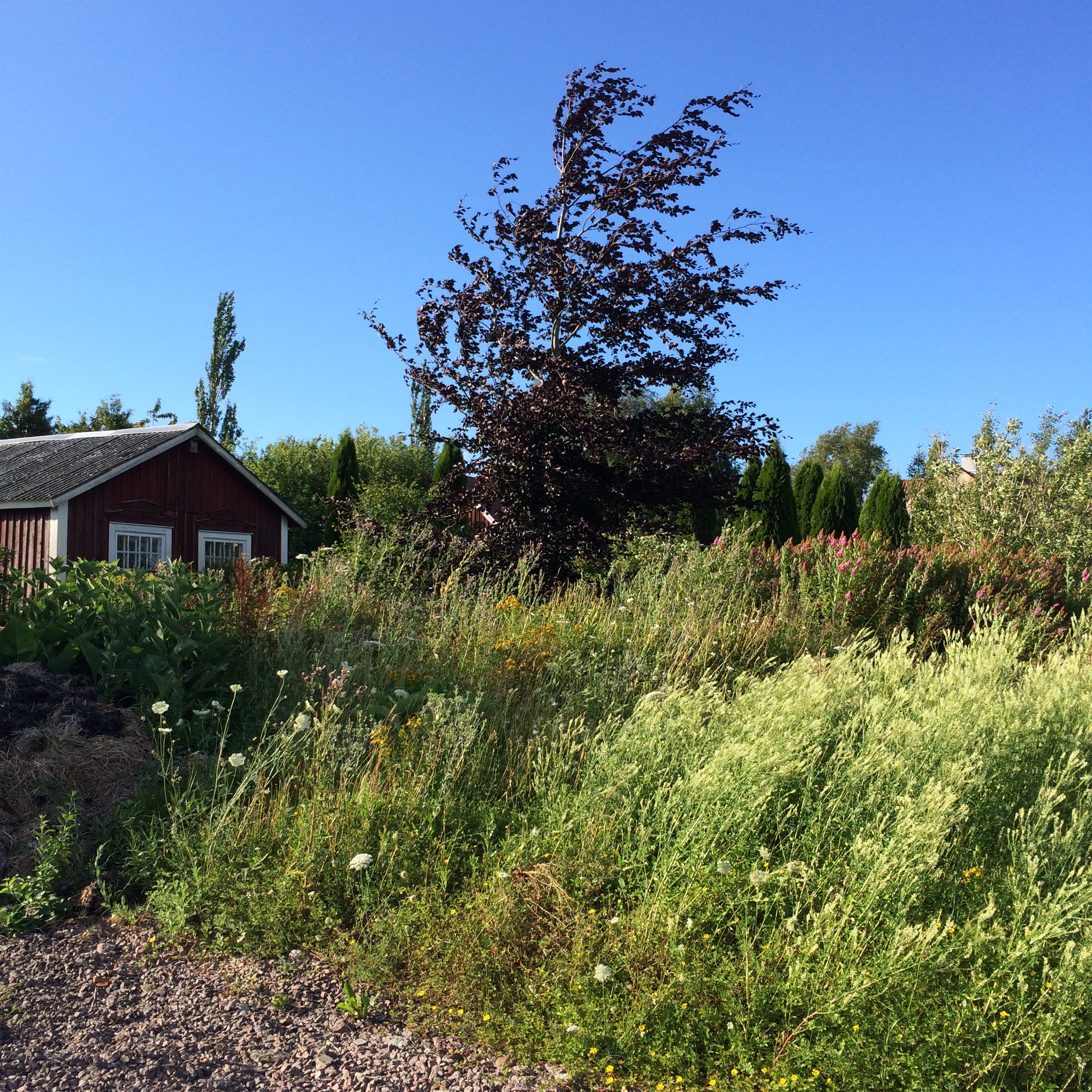Trädgårdsrapport fortsätter. Vi har en (1) bit vildvuxet. Spännande att se vad naturen gör om den får råda. Ett hav av väppling! Vita fluffiga, en sorts klöver, humlor o bi surrar…. Ruriks mamma hette Wäppling i efternamn, så det är en växt som familjen är uppmärksam på (lite humor att vi heter Bladh nu 🙂