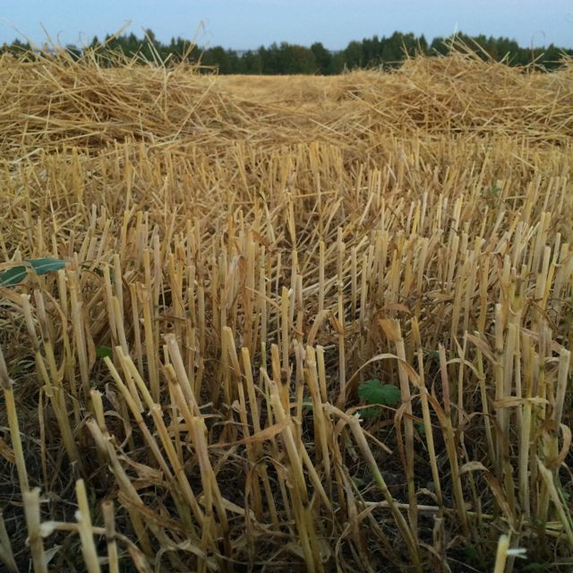 Vårt hus är omringat av åkrar och i år har det varit säd på alla åkrar. Nu blir våra småfåglar oroliga och de flyger in i trädgården (de gillar ju så klart att äta från axen annars) hela landskapet ändrar utseende över en dag. Det är nog många små djur som blir lite förvirrade.