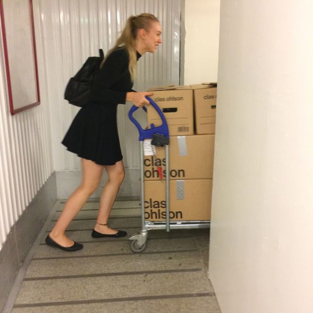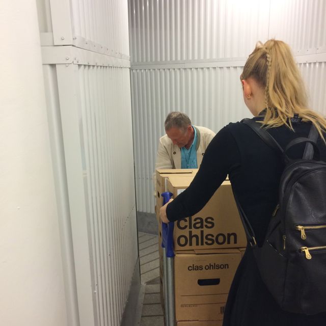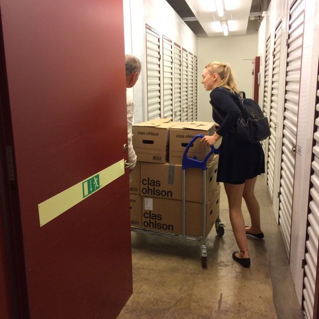 Logistiken fungerade ( vi fick lådorna i bilen och Rurik körde som en Gud trots en GPS som lurades, vi kom fram) trots sluta-jobbet trafik – och nån form av lycka infann sig när vi äntligen var på plats…. i en helt ny värld….. av förvaring.