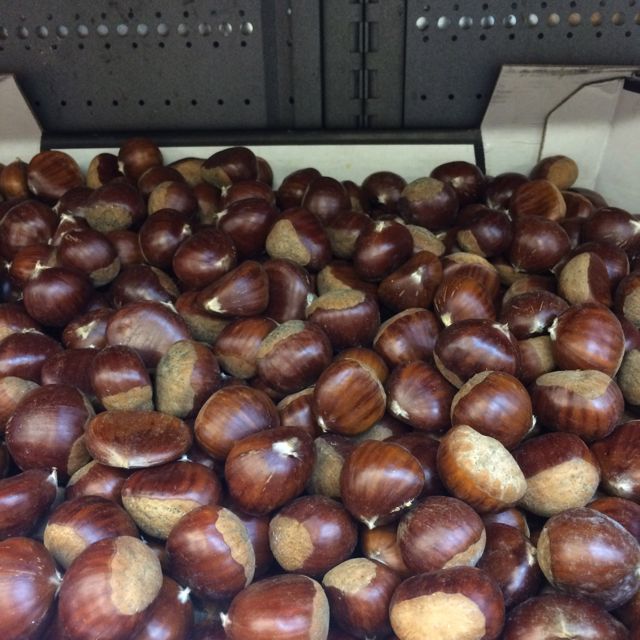Stora fina kastanjer…. i massor. Jag sjunger! Tröttnar aldrig – antingen gillade i ugn eller skalade och som proteinmums i grönsaksgrytan.