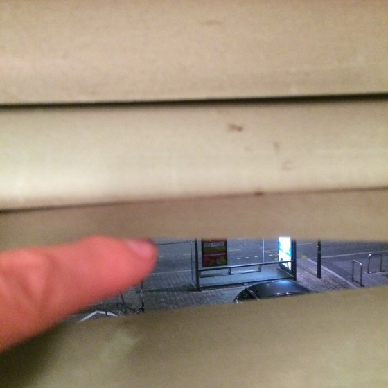 Öppet fönster, men persienner. Så spännande med alla ljud o dofter. En pizza på stan, nu sova. God Natt