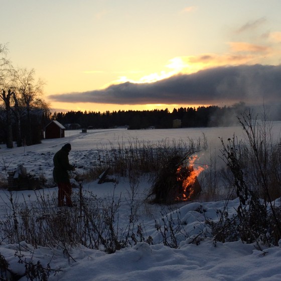 Elden ger oss lite värme och vi tröstar oss med tanken att för varje dag, kommer ljuset och solen närmre. Det gillar vi.