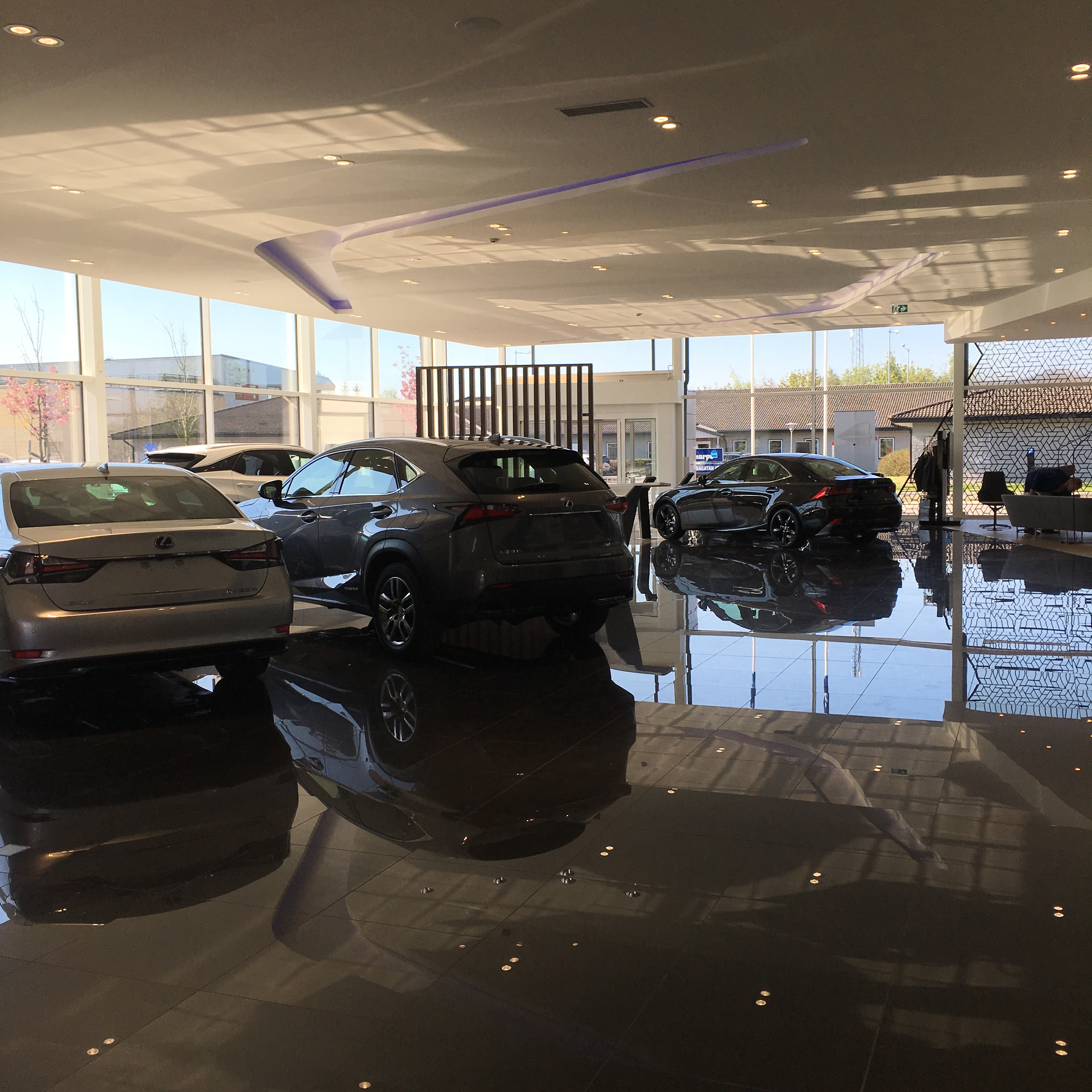 Service på bilen gör att vi nu befinner oss på Toyota, vi smyger in oss i Templet av Lyx -de nya Lexusbilarna. ” passa på att gå på toaletten” råder Rurik. De har en alldeles särdeles fin, Japansk toalett.