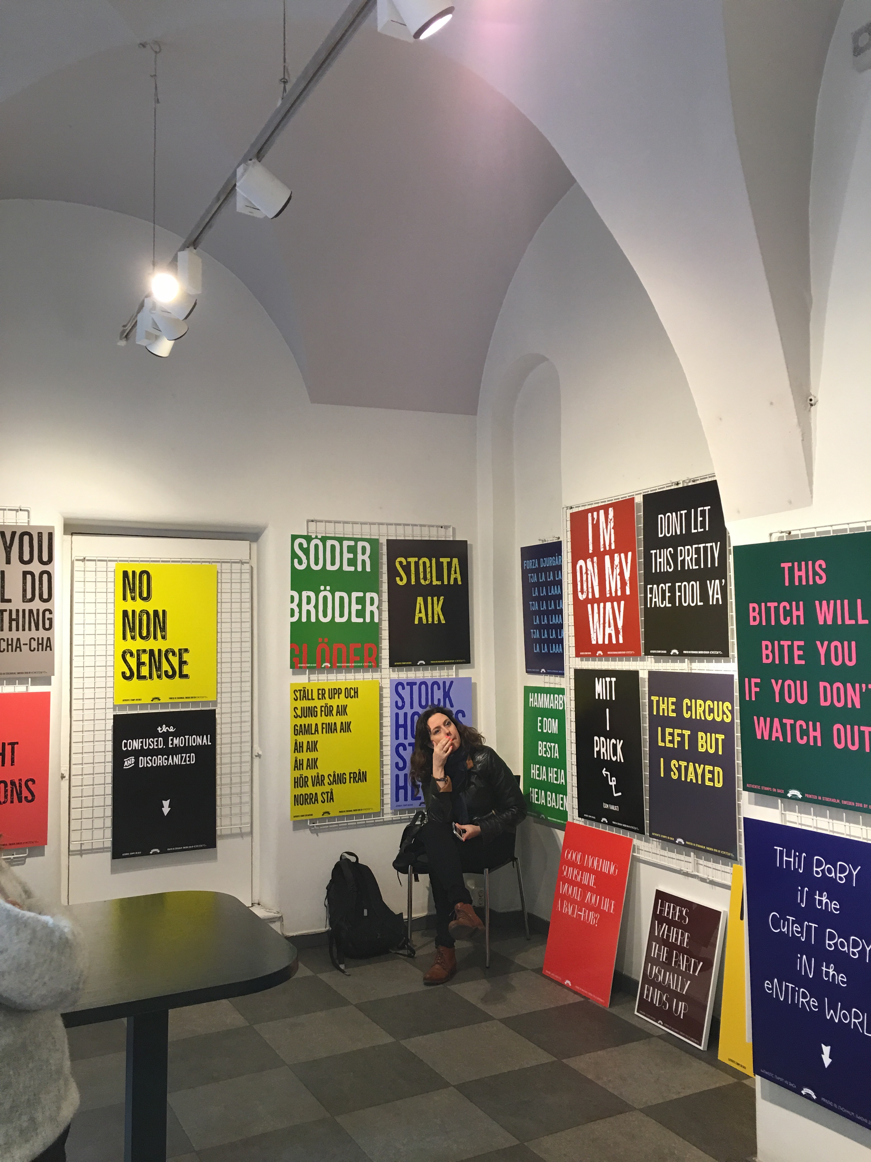 Lite roligt bild. Det är ägarna till det här galleriet som för tillfället har utställning med sina egna tryck. Väggarna ropar, bokstavligen.