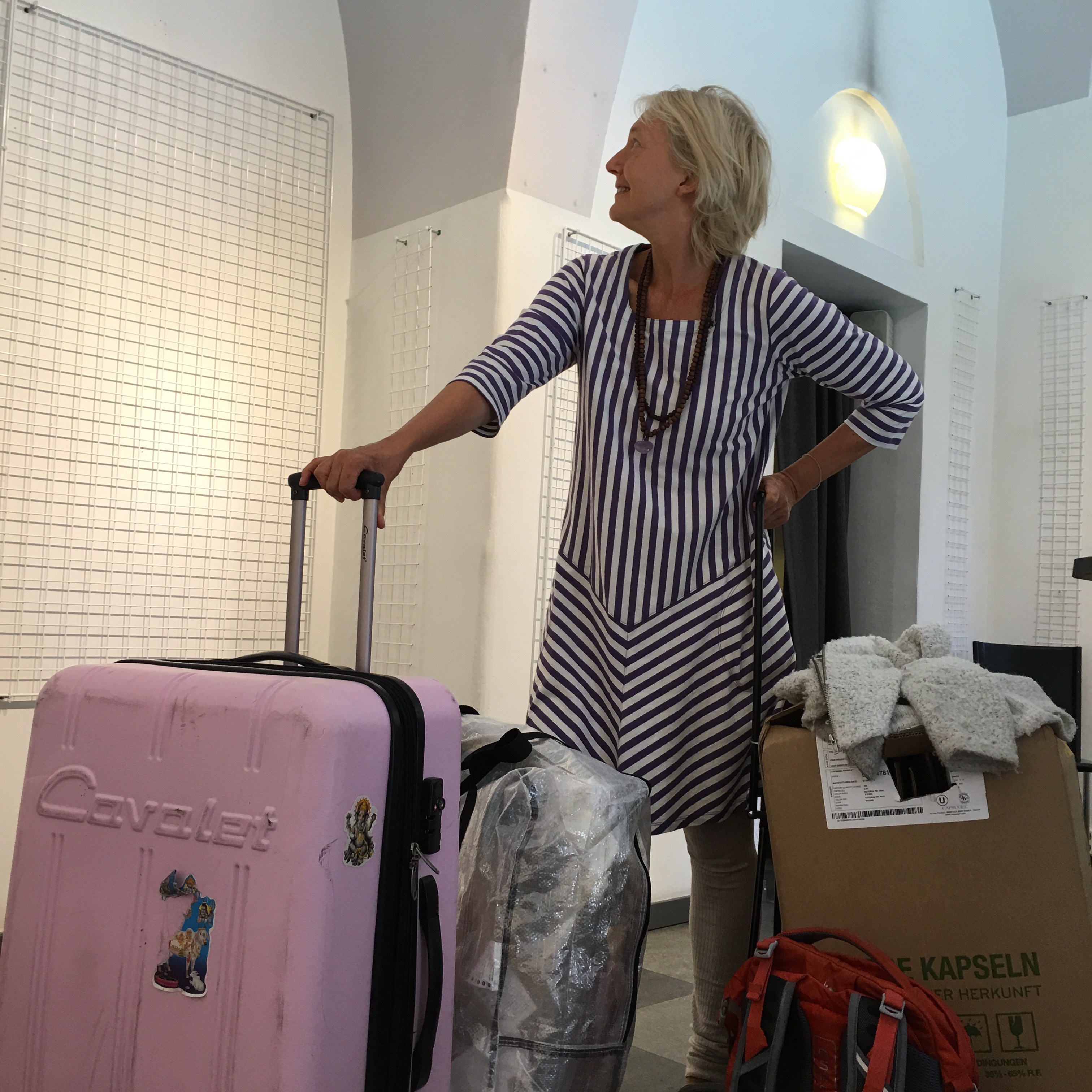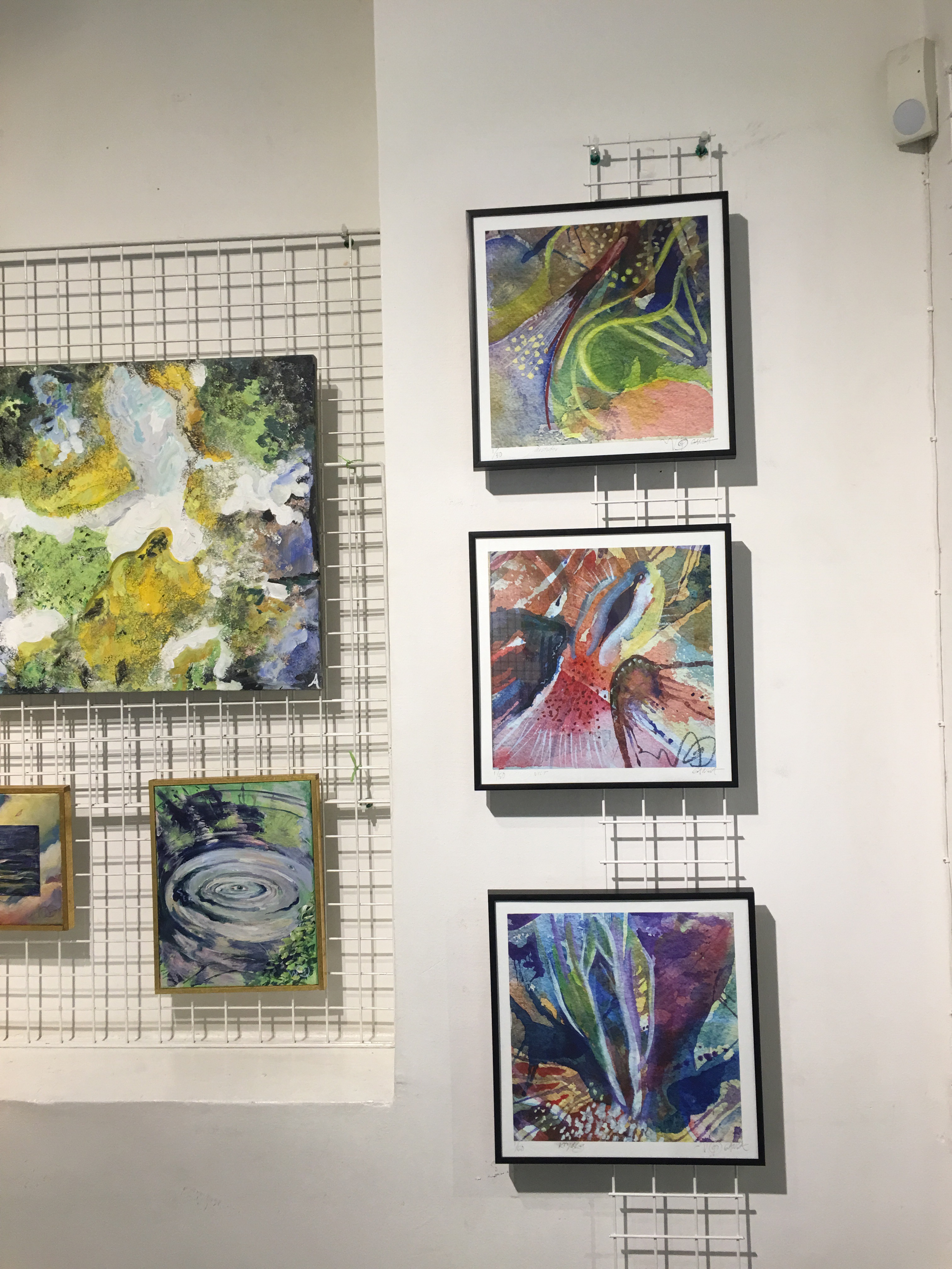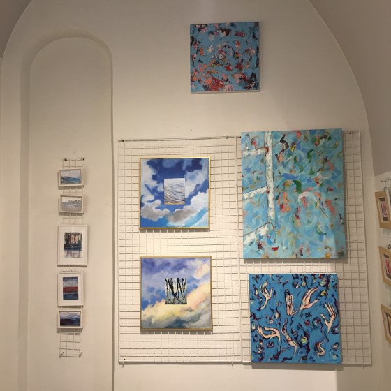 Det är Ganga som har utställning med Ylva Walker och Anna Forsberg. Vi anländer med tavlorna, nu gäller det att göra det bästa av rummet!