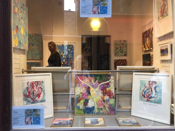 Vi är två som hänger. Provar och byter, fikar och på det igen. Så åker Ylva iväg o hämtar fler tavlor, Ganga o Rurik går iväg och gör inköp till morgonens Vernissage.