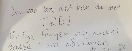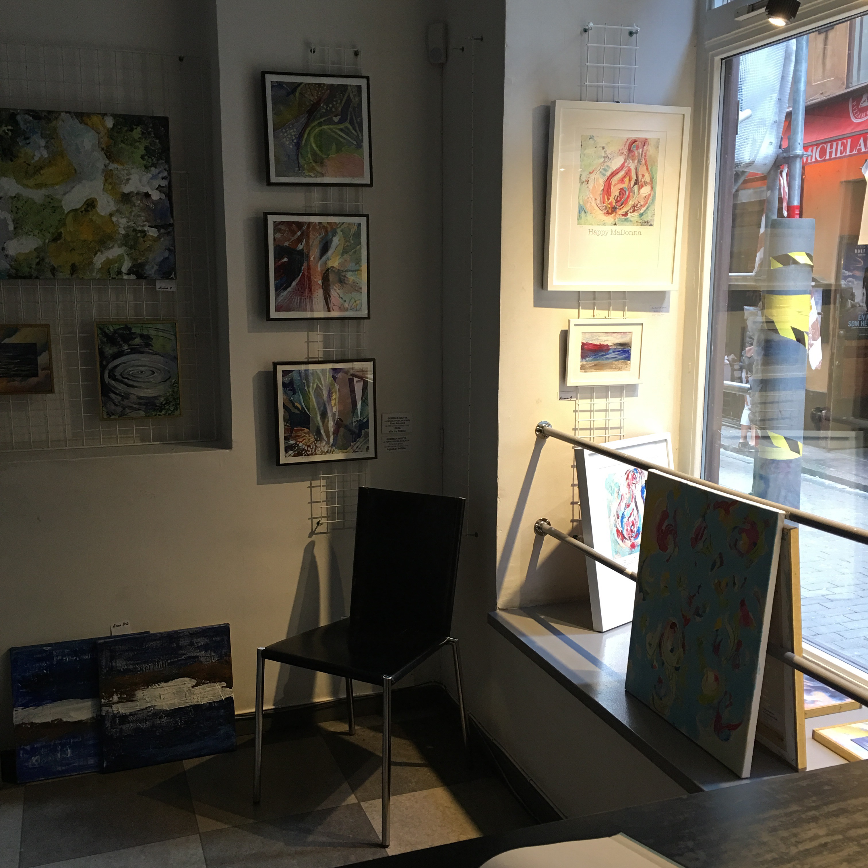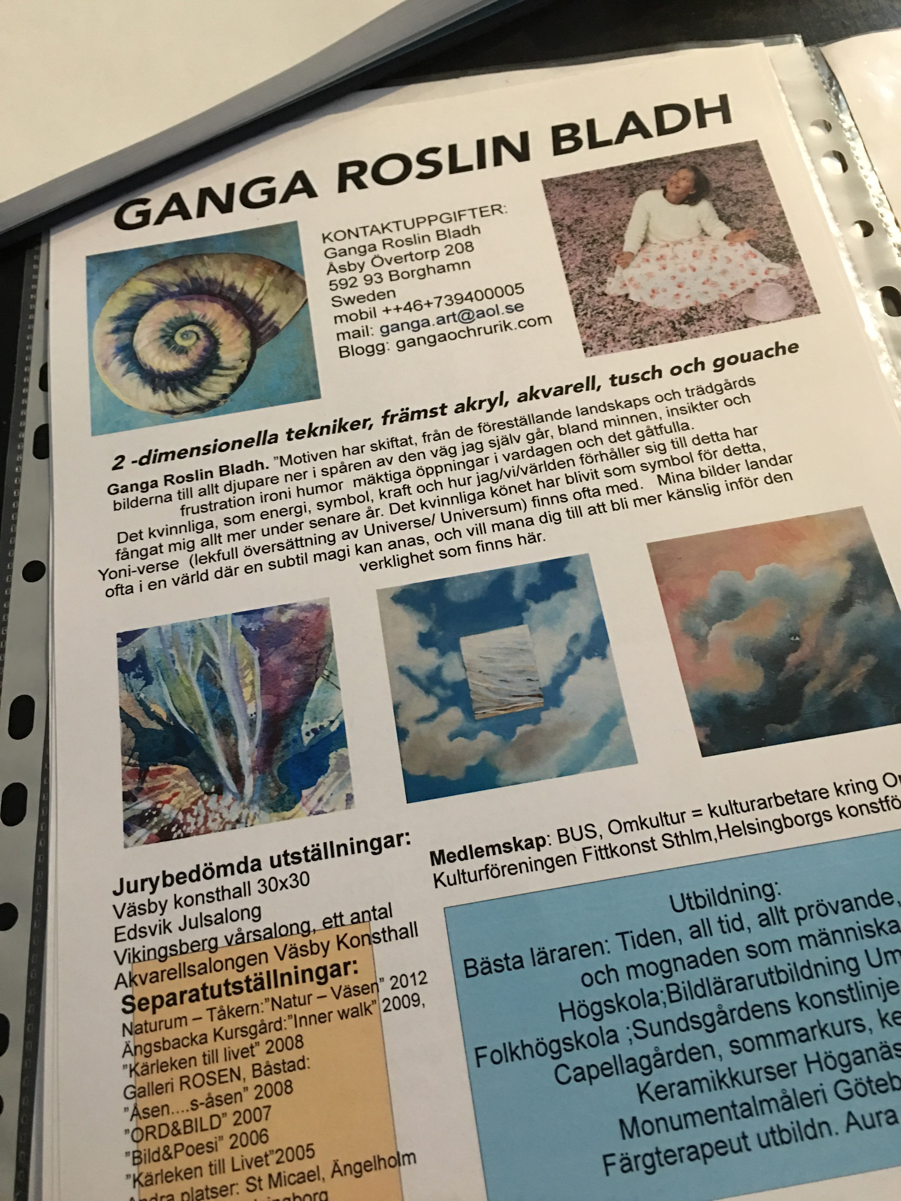 Tänkte faktiskt ett tag idag, att det kommer ingen alls in idag. Men nu e det kväll och släckt, summa sumarum, så kom där rätt många, men så märkligt i klump liksom. De som kommer in är en väldigt entusiastisk publik, riktigt trevligt det här. Undras om jag inte blir lite högfärdig 🙂 Imorgon har vi även kvällsmingel, lite Finissage ( fast det är näst sista dagen). Vi ses då