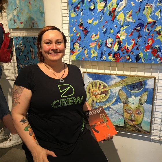 O alla spännande möten!! poet M Garfjäll, Kvinna med attityd, i sin hand en nyutgiven bok med Dadaistisk poesi-där hon e med, en ko-dikt, helskön. Amerikansk utgivning.