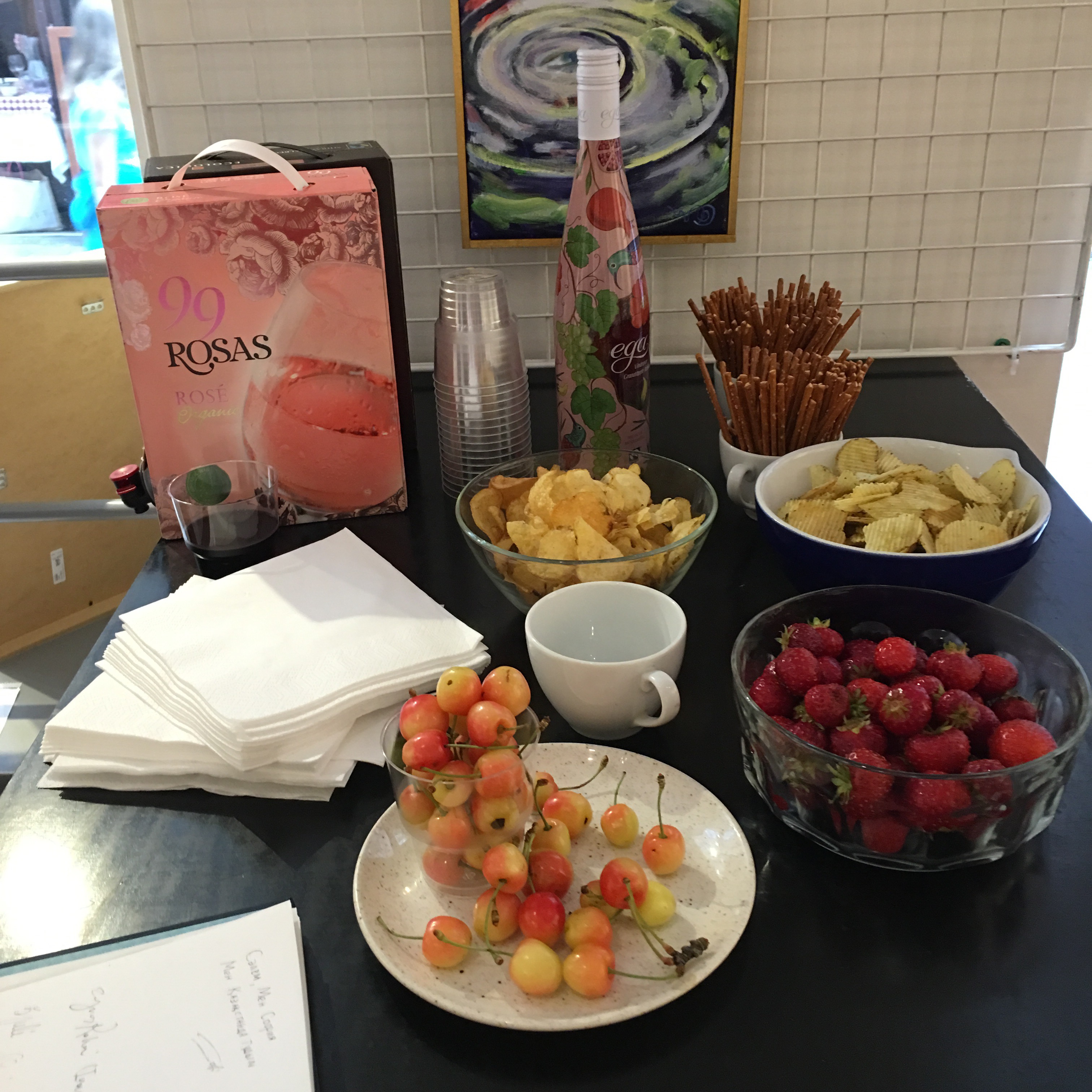 Ganska enkelt alltihop, lite dricka och lite tilltugg. Sen fyllde vi rummet!