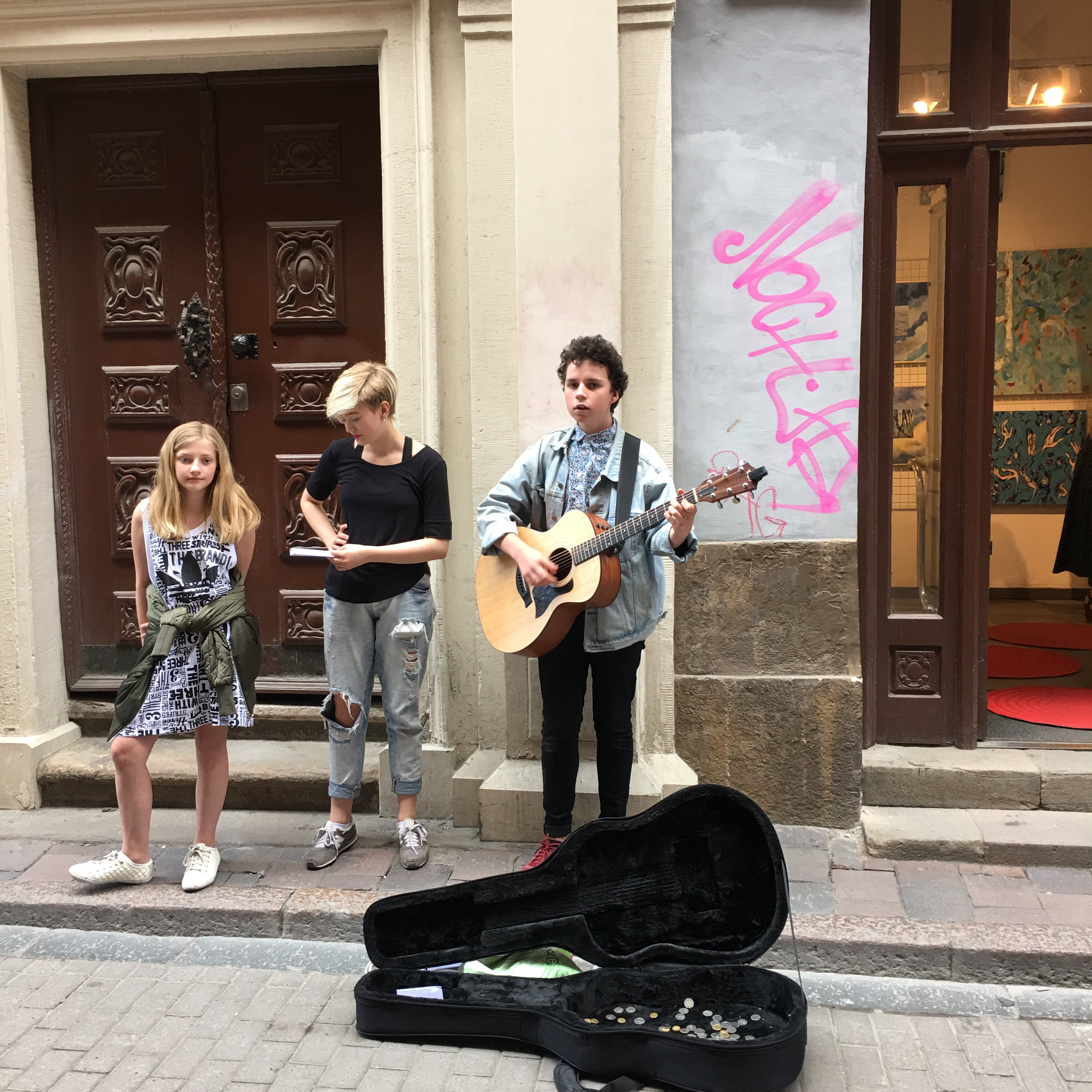 Sådär lagom tills att vi börjar plocka fram till festligheterna. Kommer tre härliga tonåringar och ställer sig utanför o sjunger.