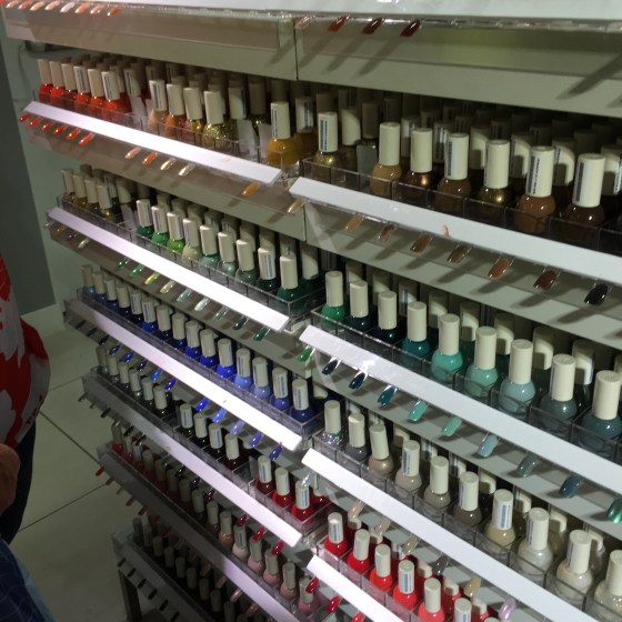 H&M, inget ställe vi brukar vara på. nagellack . Men, vad har hänt här, så mycket färg! Ganga o Rita kollar runt och hittat nagelackshyllan. Det blir till att hämta Rurik som jämt letar självlysande färger. Här fanns det oanade skatter.