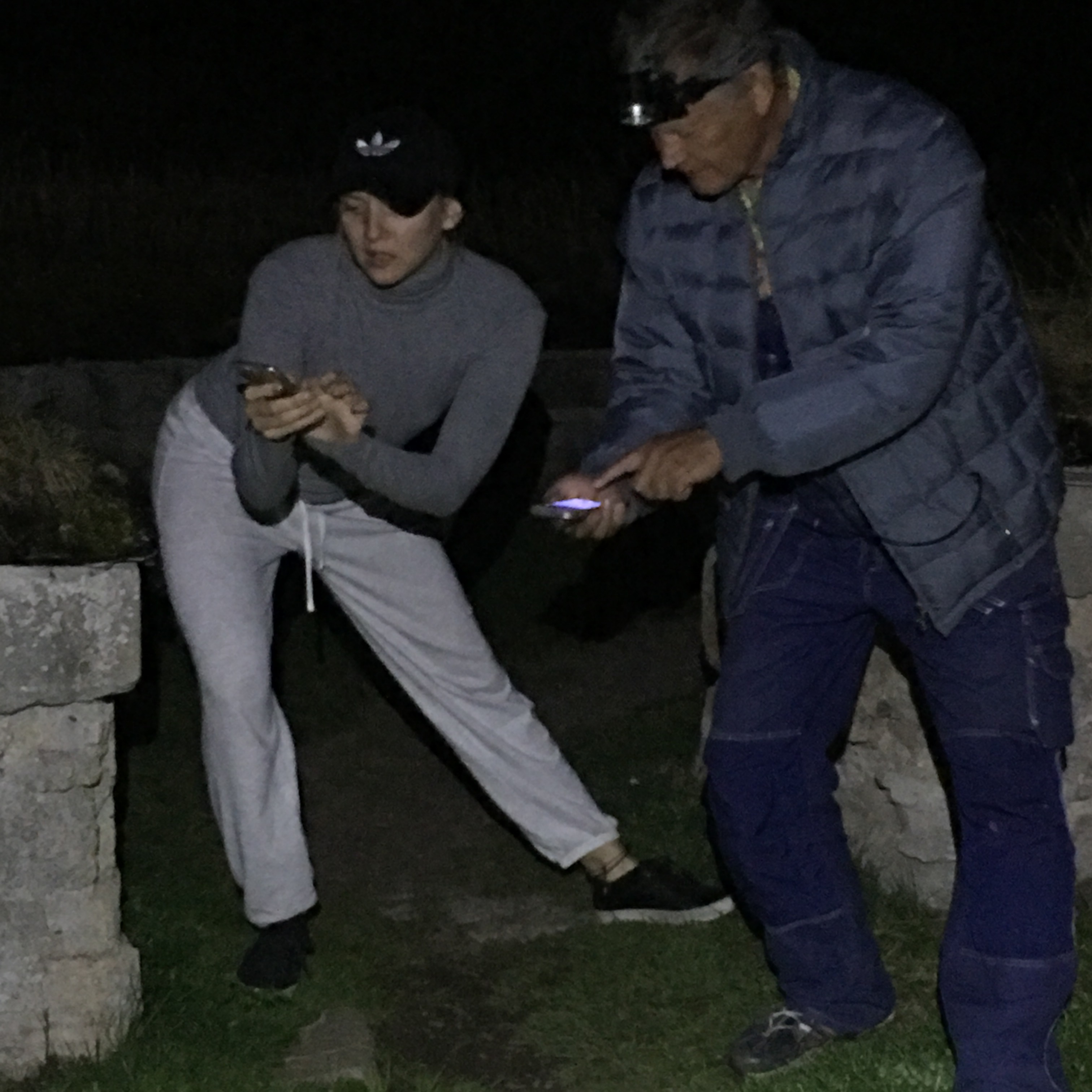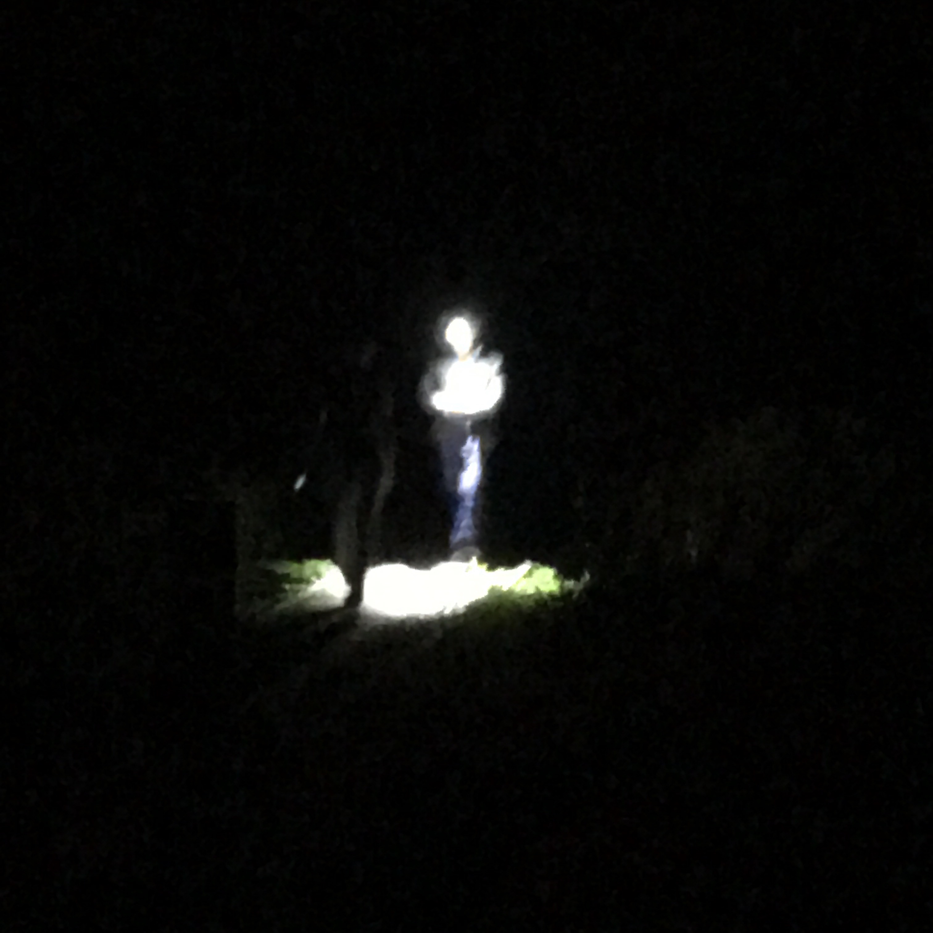 Ganga kör vidare och vi letar tänkbara platser. Vilket driv det blir. Här är pokestopp mitt ut i mörkret. Men vad gör det när det finns pannlampa.