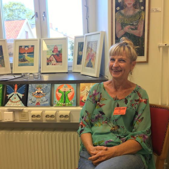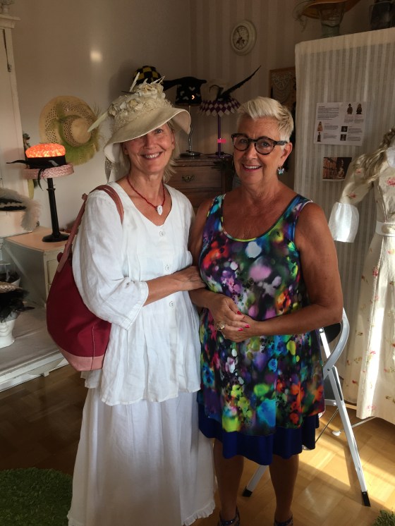 Lena Linde, nu är vi på Konst på Stan. Vadstena bubblar hela helgen och vårt sista stopp är hos hattmakerskan. Så roligt!