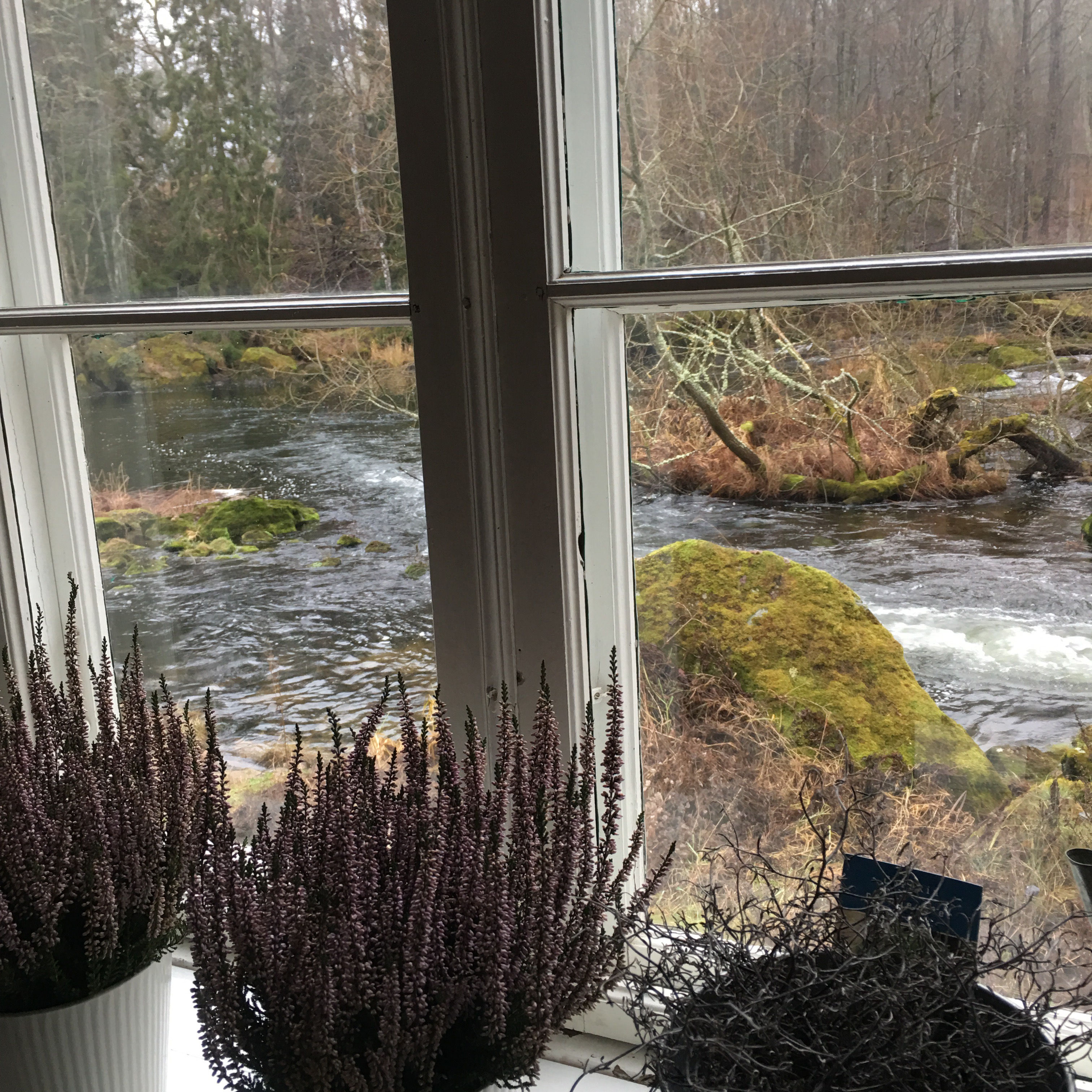 O kolla utsikten. Hon bor i ett fd mejeri, alldeles vid en fors, Linnefors heter platsen.