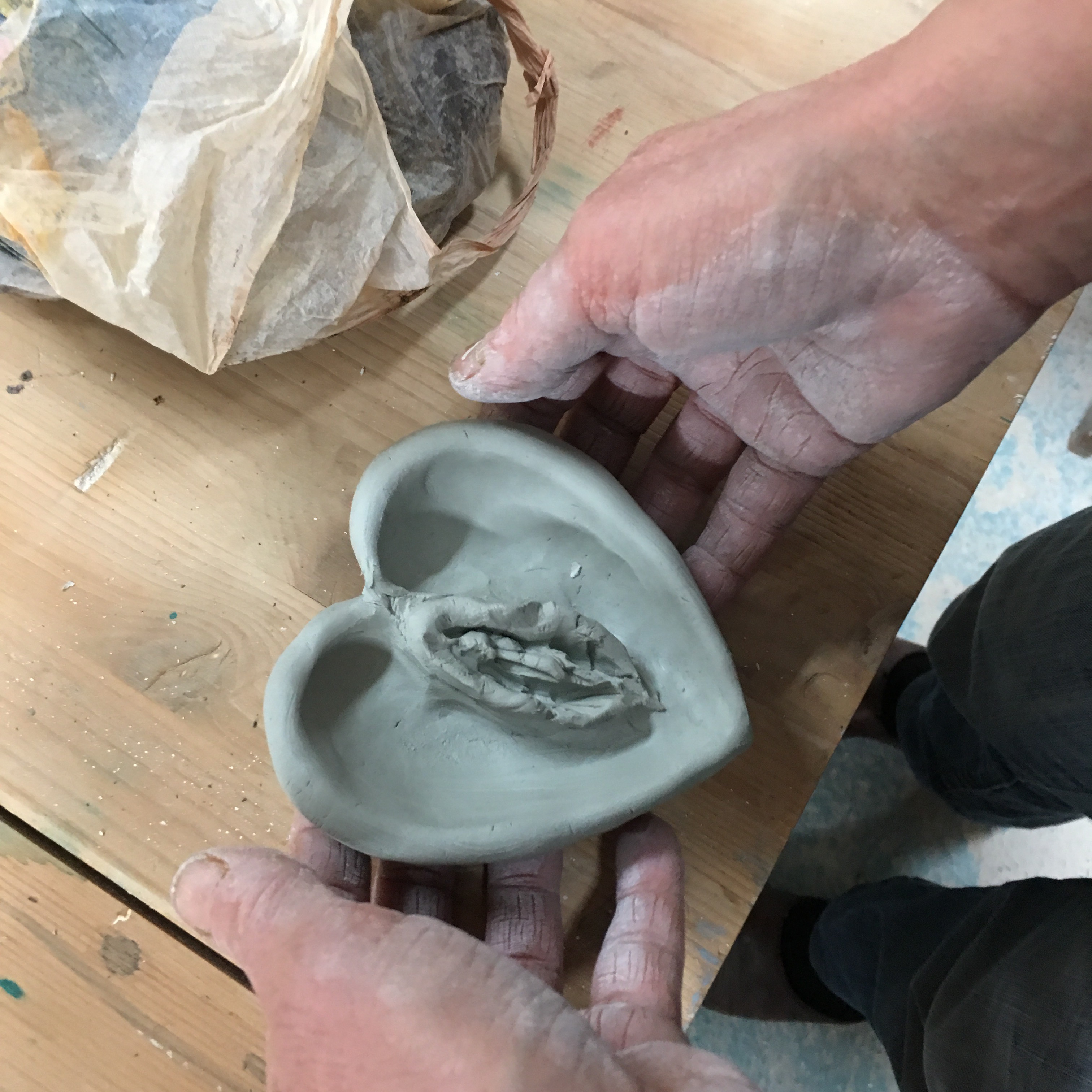 Titta gärna igen, på Kerstins skulptur ( ovan bilden här med hjärtat) Hon skulpterar om en gammal forn Engelsk Kvinnofigur, Sheela-naGig, som man gärna satte satte ovanför ingången till sitt hus. Inte för att bjuda in till samlag utan för att hon visade sin kraft och styrka genom att visa sitt kön. Ingen flört alls. Kan vara bra att komma ihåg.