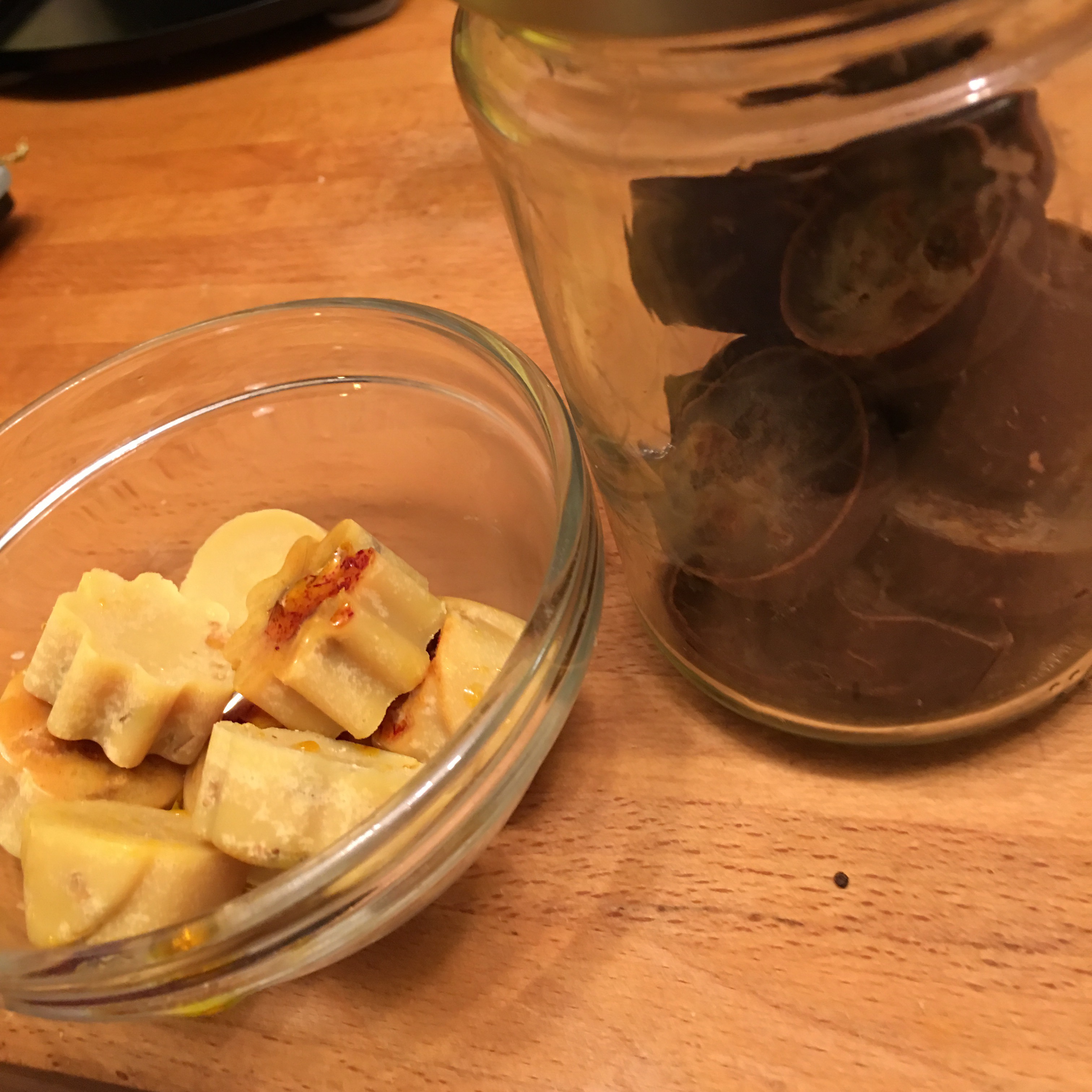 Vi skulle göra extra god och hälsosam choklad.det gick ju sådär. Raw Kakaofett är extremt nyttigt. Ökar på metabolismen, mycket antioxidanter och bakteriedödande. Rurik gjorde första försöket: honung som sötma, och saffran som smak – allt bara sjönk till botten utan att lösa upp sig. Hur äckligt som helst. Smakade späck ungefär. Ganga gör nästa försök och följet ett recept till punkt och pricka, tror hon i alla fall: det ska vara salt i, 1tsk. Det blir så salt att magen knyter sig. Lika äckligt som saffranschokladen, fast på ett annat sätt. Nu undrar vi, hur mycket äckligt julgodis finns det i landet just nu? Med överambitiösa människor som ska briljera ? Med bränd knäck, raserade pepparkakshus, äcklig choklad o fula marsipangrisar. Vi bara undrar. Stackars Sverige.