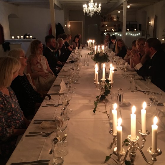 Ett bröllop för nära familjen och några nära vänner. Många barn som sprang runt bordet. Mysigt -och riktigt roligt.