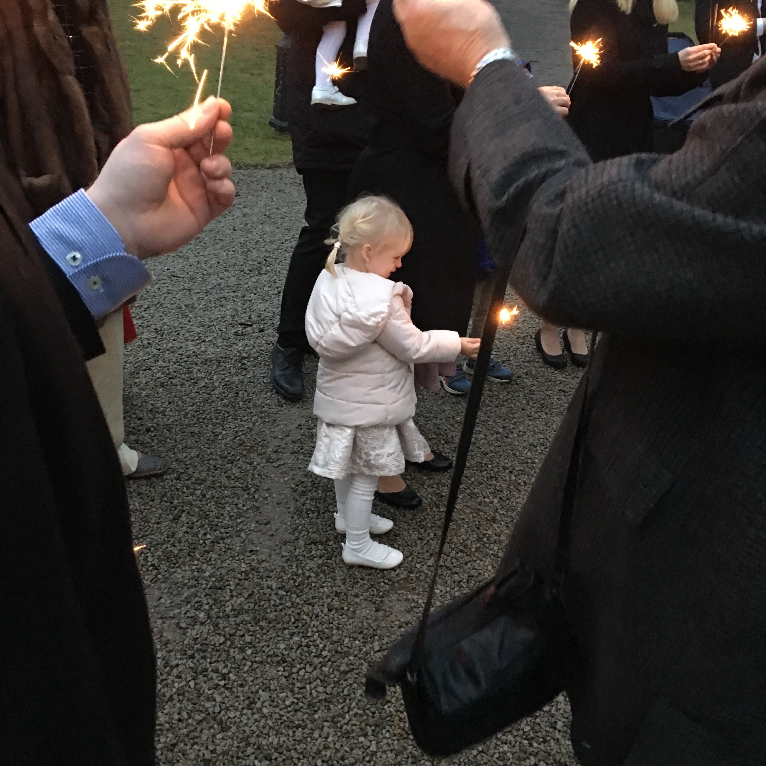Ett bröllop för nära familjen och några nära vänner. Många barn som sprang runt bordet. Mysigt -och riktigt roligt.