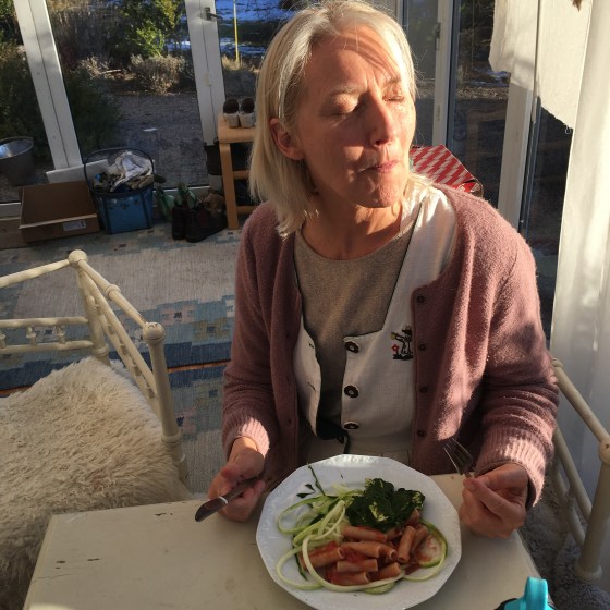Nu blir det årspremiär för middag här i ljuset. En god middag och vårsol. Förtrollande. Hej Sol!