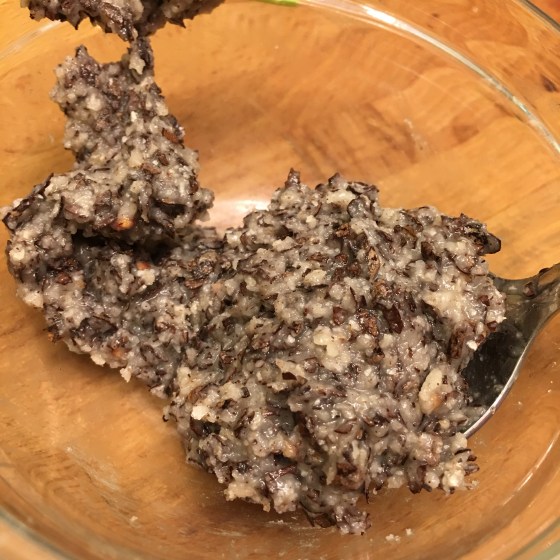 En matsked smält kokosfett kommer med också i blandningen. Ricinolja är känt för sina helande egenskaper, den kallas ibland för ”Kristi Händer” för den sakens skull. Nyktossat ricinsmör måste vara fantastiskt. Men, vi vet inte.
