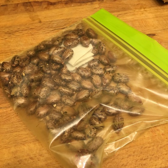 Vår Ricinplanta gav rikligt med frö förra året och Ganga har länge haft planer för denna påse med överflöd.