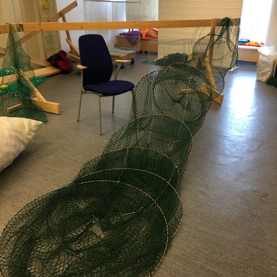 Dagen fortsätter bland fiskeredskap. Så här ser större delen av galleriet i Ödeshög ut på vinterhalvåret.