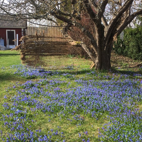 Blått lyser marken, ännu ett tag, över marken svävar vassväven. Nu när det åter är varm och skönt ute ska den både bli klar och få en funktion till konstrundan. Men ett större projekt såg sin fortsättning idag. Det började som en rostig ärta.