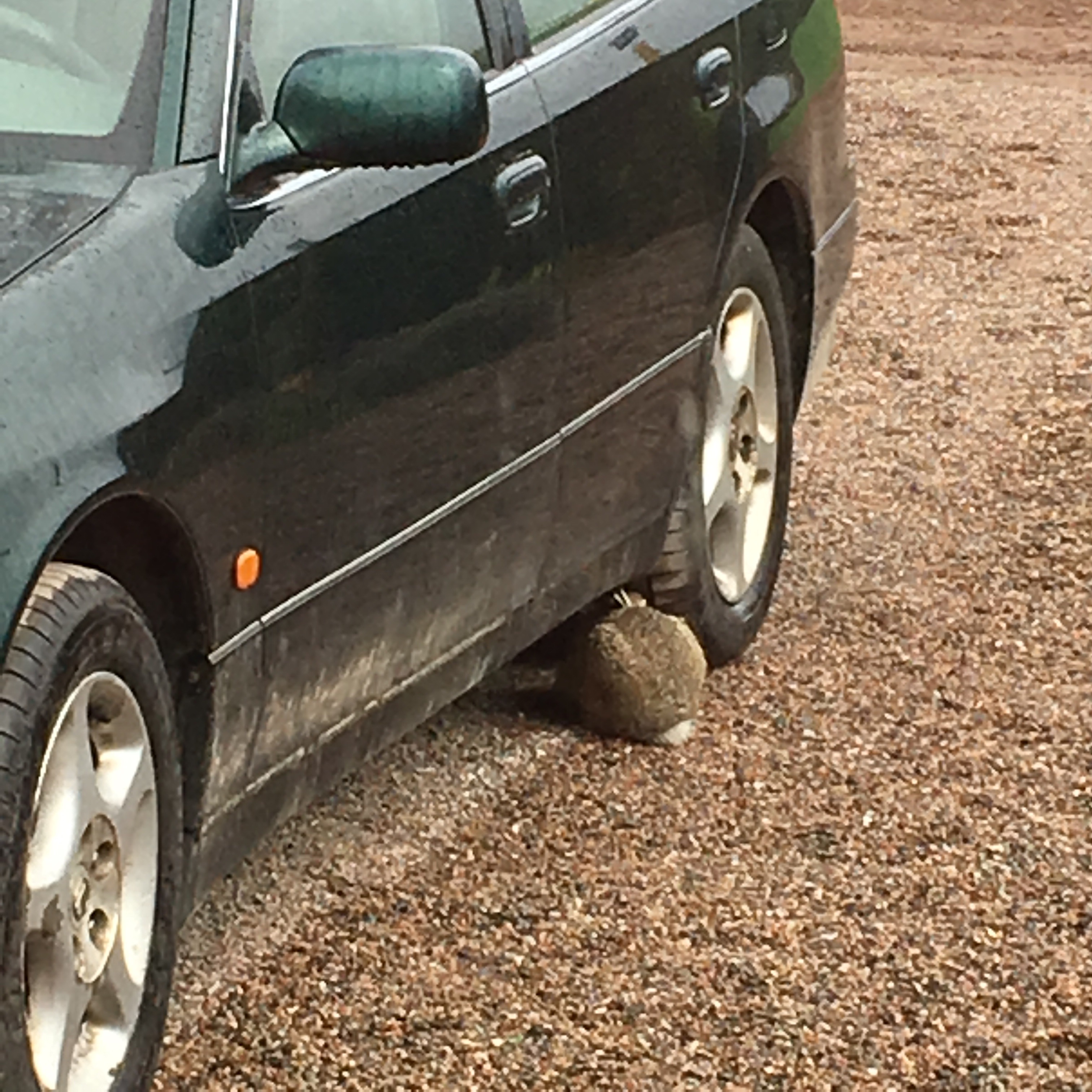 Sådär lagom till påsk blev vi uppmärksamma på en liten hare som tycker att det här är hennes/hans trädgård. Går makligt omkring runt huset och gömmer sig bara pliktskyldigast när vi går ut. Den rör sig smidigt under elstaketet som vi satt runt tulpanlandet ( för att inte harar och rådjur ska äta upp våra blommor). Men allt blommar så fint. Men visst är lilla boet gulligt. När den kryper in där med baken och gör sig till en boll-så är den osynlig… i alla fall tycker den själv det. Gulligt med en alldeles levande påskhare❤️