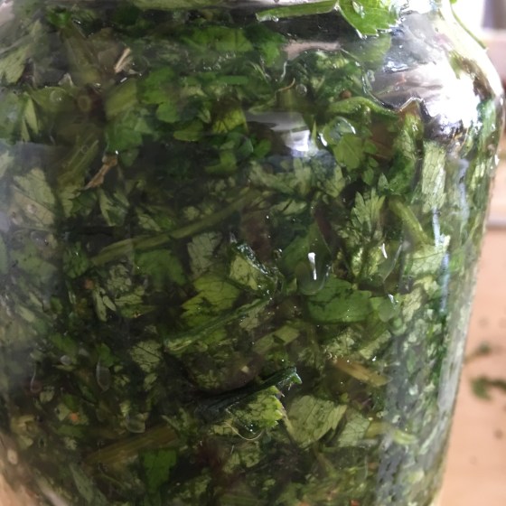 Så detta är ett sätt att få bra bladgrönt året om. Att plocka fram o göra magnifika sallader på vinterhalvåret. Förresten, mjölksyrning innehåller inte mjölk, det är namnet på några av de verksamma bakterierna i processen.
