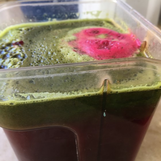 Morgonjuicen har ändrat färg. Innan var det rödbetans röda färg som dominera. Nu tar den mörkgröna färgen över (vilda blad). Vi har verkligen fått uppdatera oss på en hel del: Chimpanskost är ett begrepp. Känns bättre än det där med stenålderskost baserad på kött o nötter (grov förenkling). Chimpanskost visar på en rawfood-mat med mycket blad och gärna kombinerat med frukt. Kroppen tål frukten bra när den är kombinerad med frukt. Chimpanserna visade att de gärna rullar in frukt o bär i blad o äter! Mindre nötter o grönsaker o mer blad, kan man sammanfatta. Det lär även bli mer groddat ( hurra) i hushållet nu. Lite groddningstips vi lärde var; tvätta fröerna/ bönerna i flera vatten, eftersom de innehåller ämnen som skyddat dem -men som blir till förruttnelse när man groddar. Det förklarar varför jag aldrig lyckats grodda alfalfa! Jag har sköljt för lite!