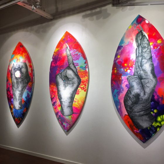 Hon berättar mycket: om sin arbetsprocess som ofta utgår ifrån ord, o gärna de där orden som vi knappt tillåter oss att uttala. Hon berättar om ”kroppsforskar” fascineras av människans förhållande till sin kropp, inte bara fittan ( som väl är det som hon är mest känd för, kanske) utan händer öron o allt möjligt.(utställningen heter Örat mot marken).