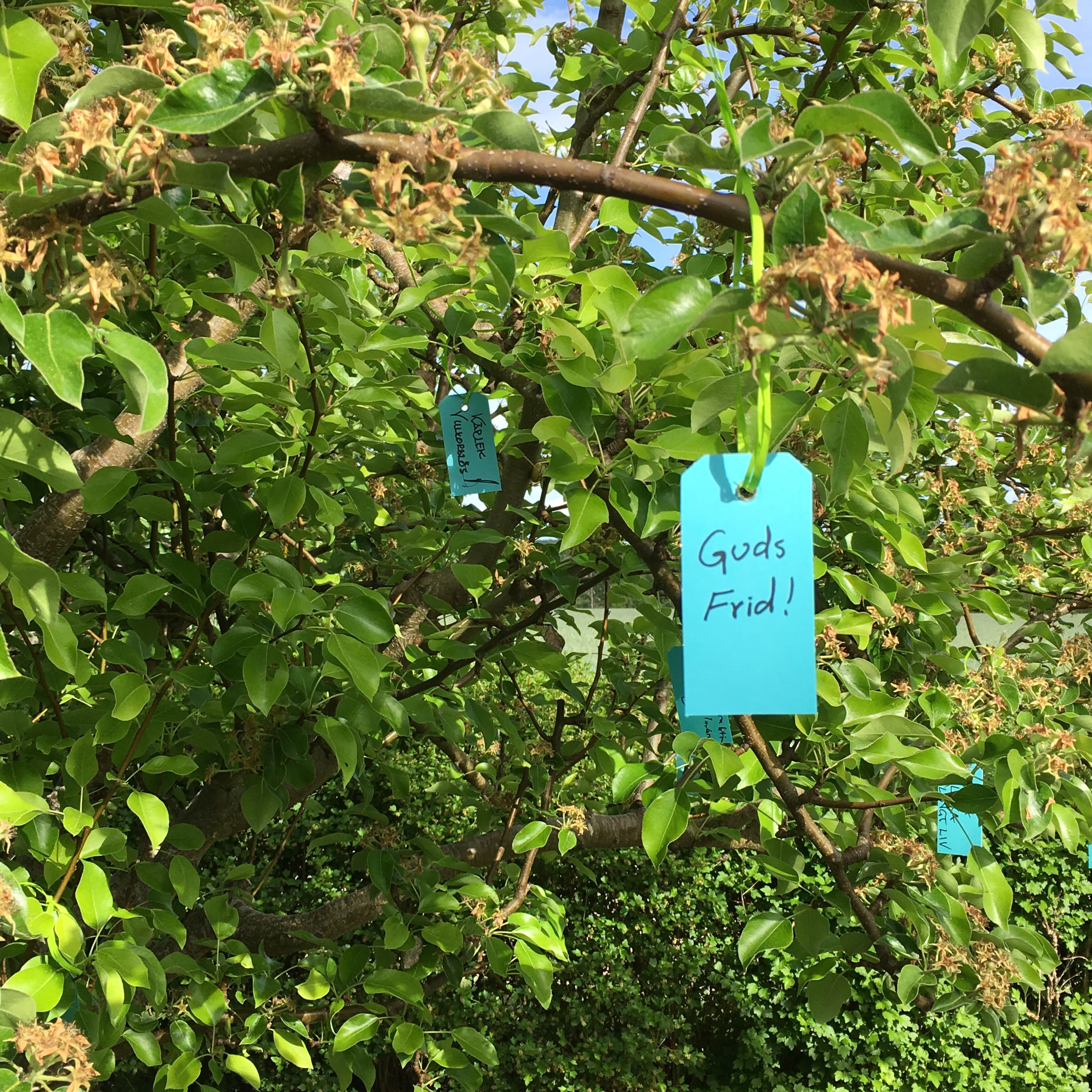 Vid äppellunden har vi ett önsketräd… o det blev så BRA. Redan fyllt med vackra önskningar. Det var så upplyftande att på kvällen lösa på lapparna -och vackert!
