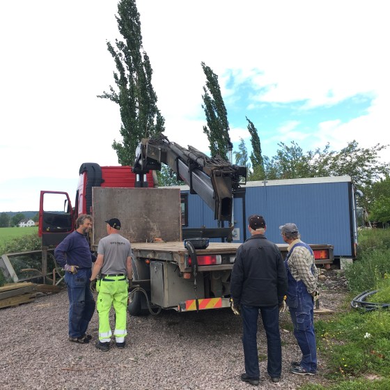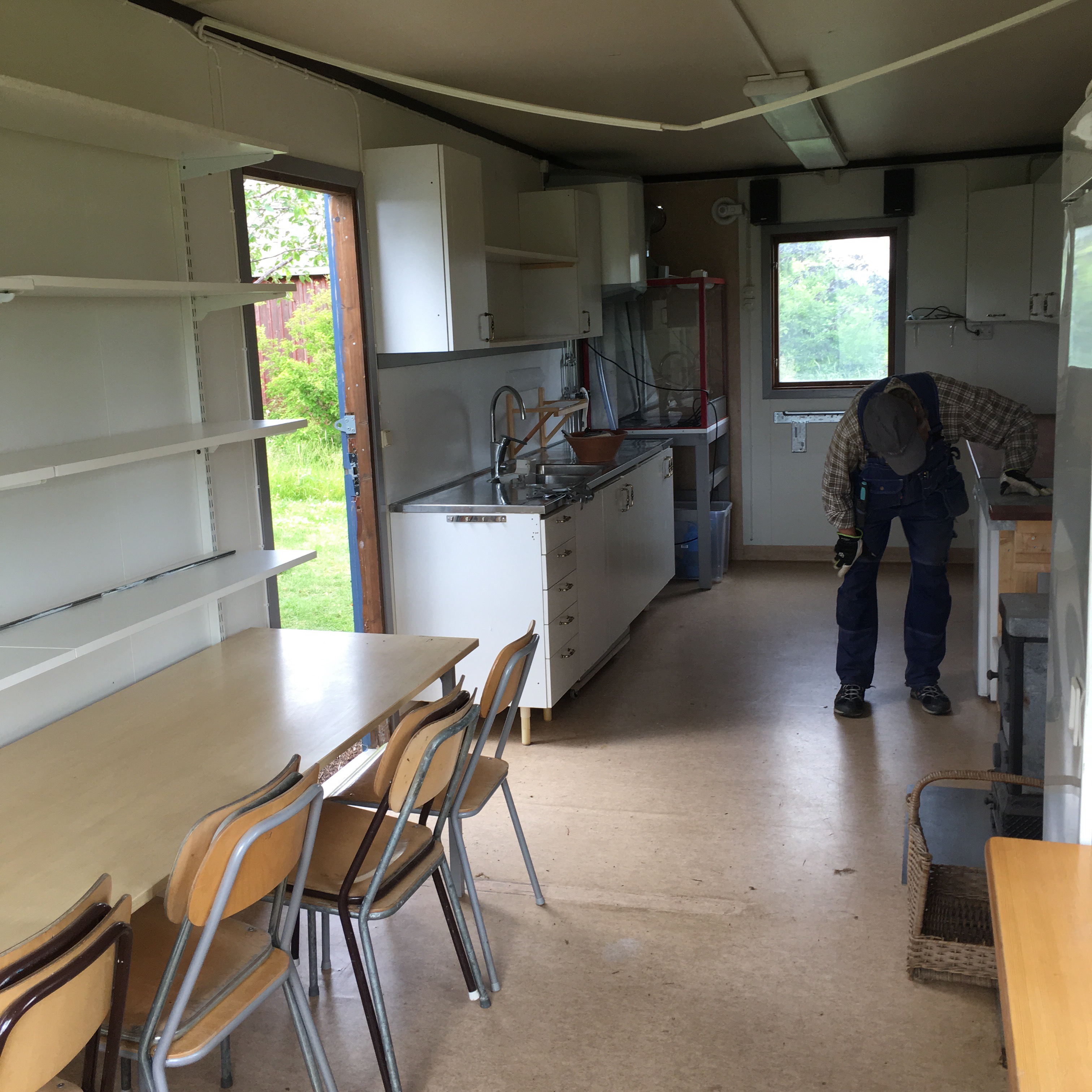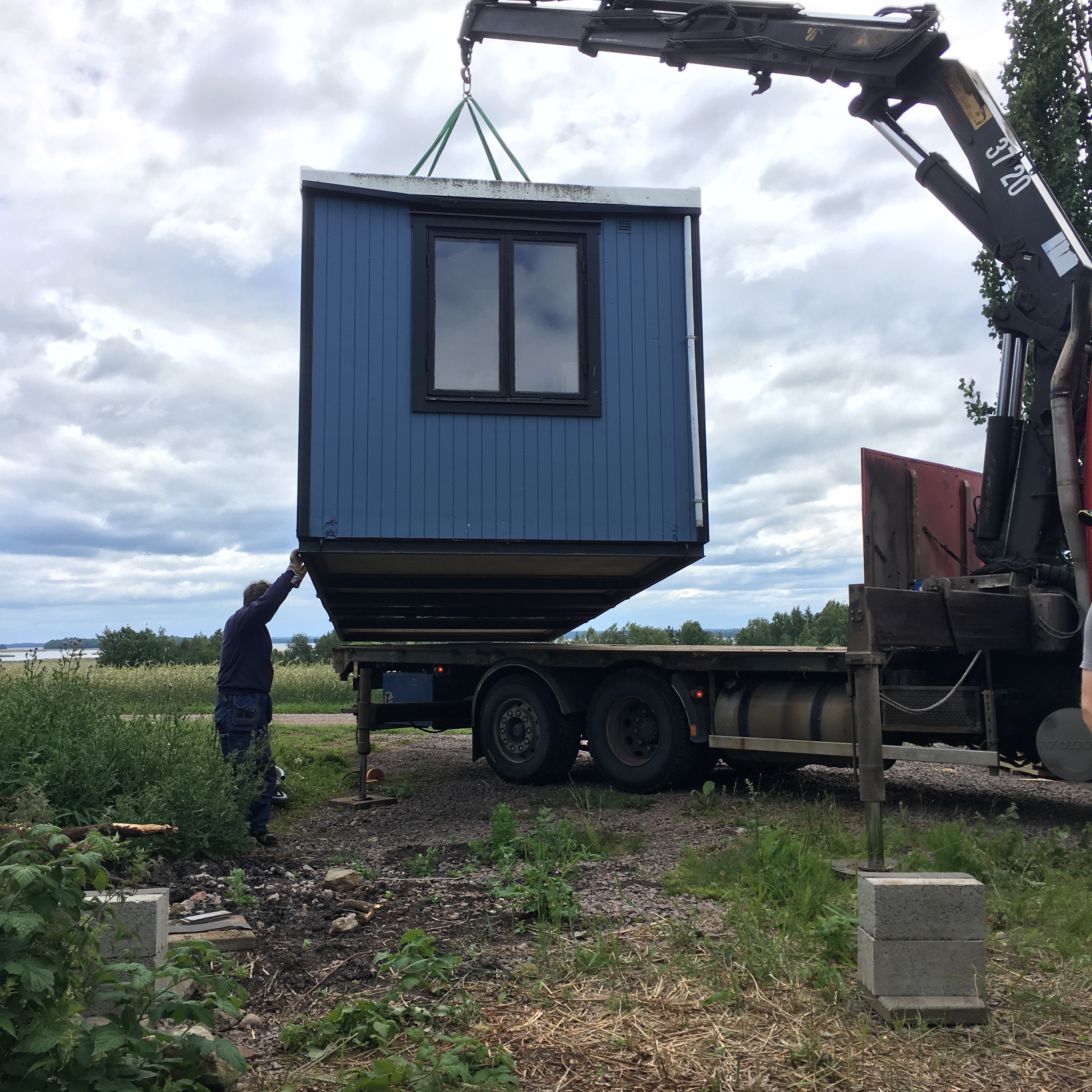 Dagen D. Vår nya Studio -för konst… keramik, skulptur o måleri. Nu kom den. Rurik har förberett, mätt och planerat.